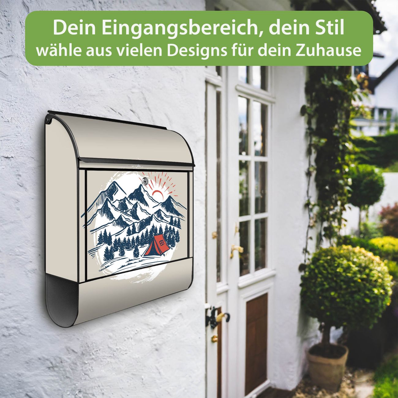 Großer Stahl Briefkasten Motiv Bergcamping Abenteuer