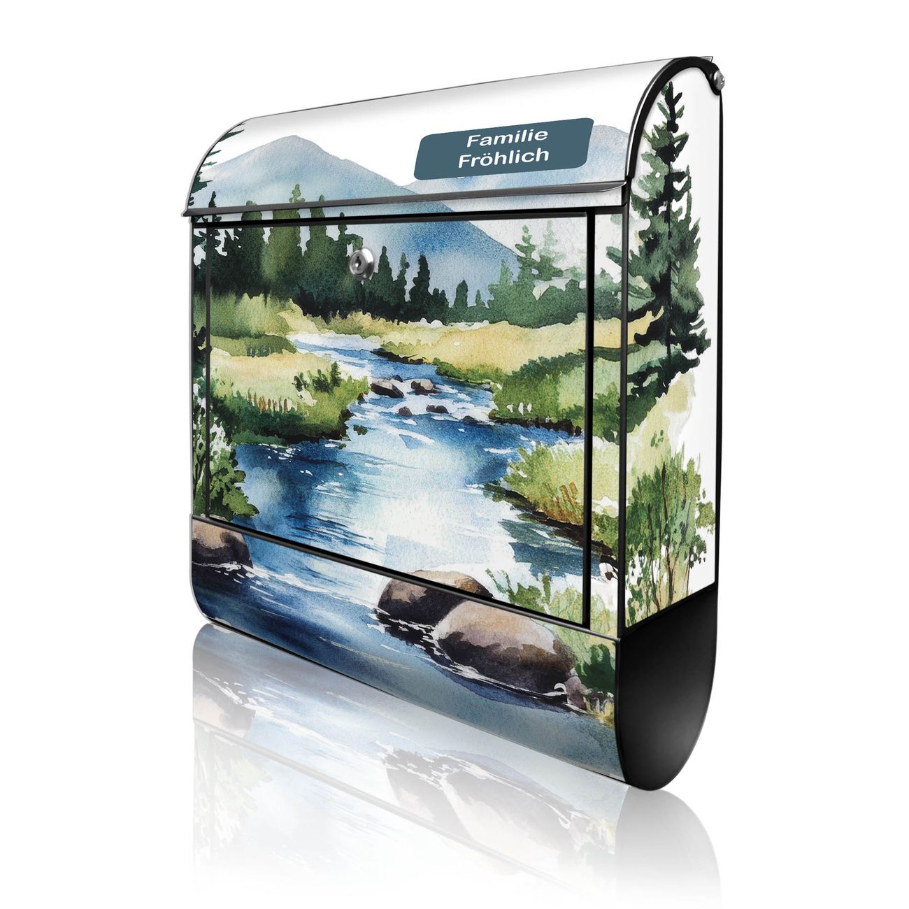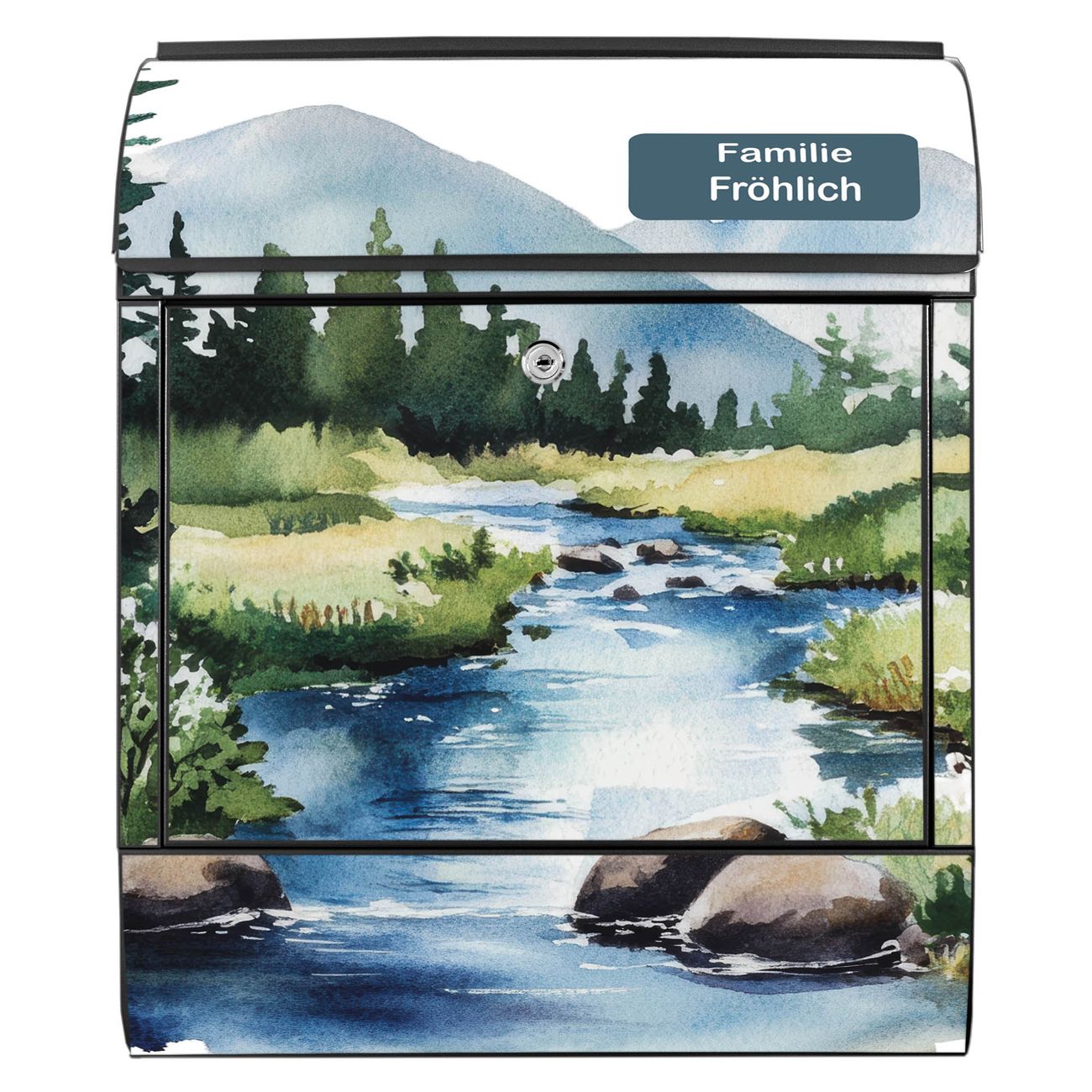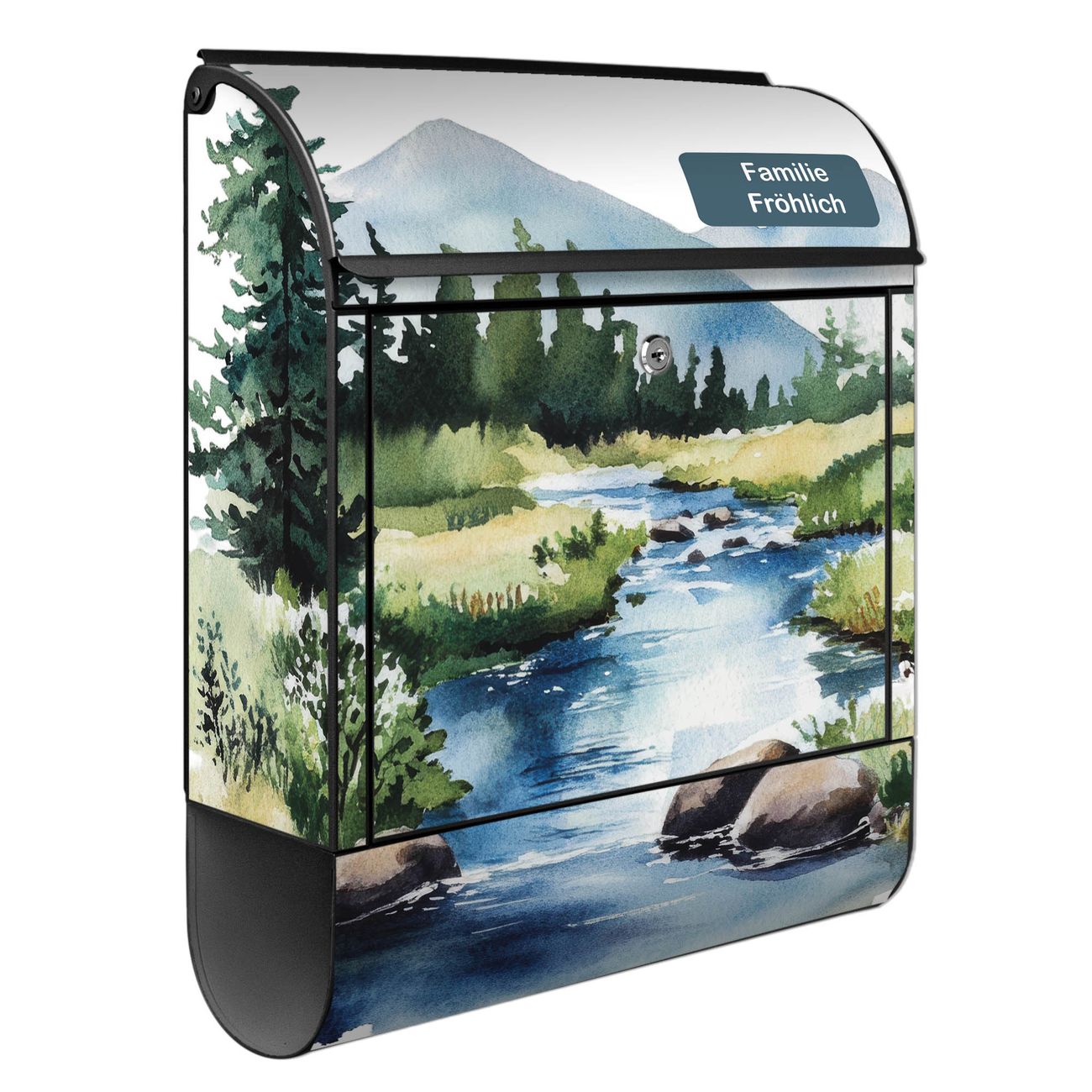 Großer Stahl Briefkasten Motiv Bergfluss in der Natur