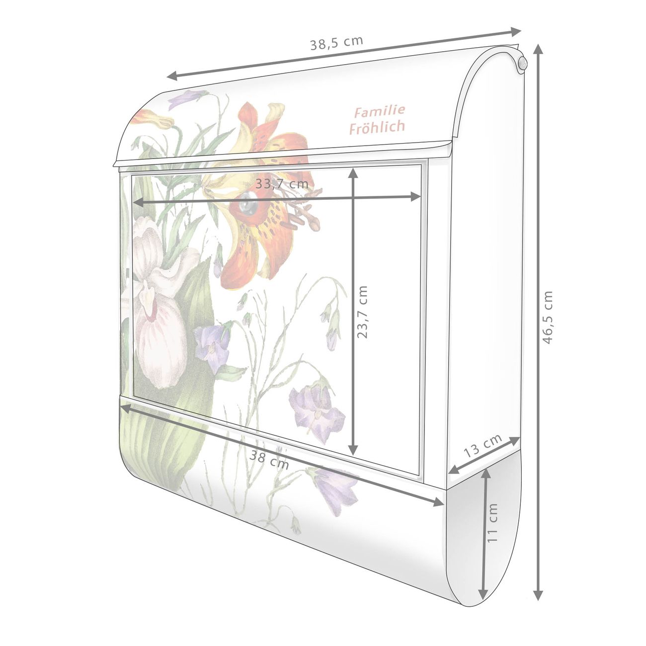 Großer Stahl Briefkasten Motiv Blumen Aquarell 2
