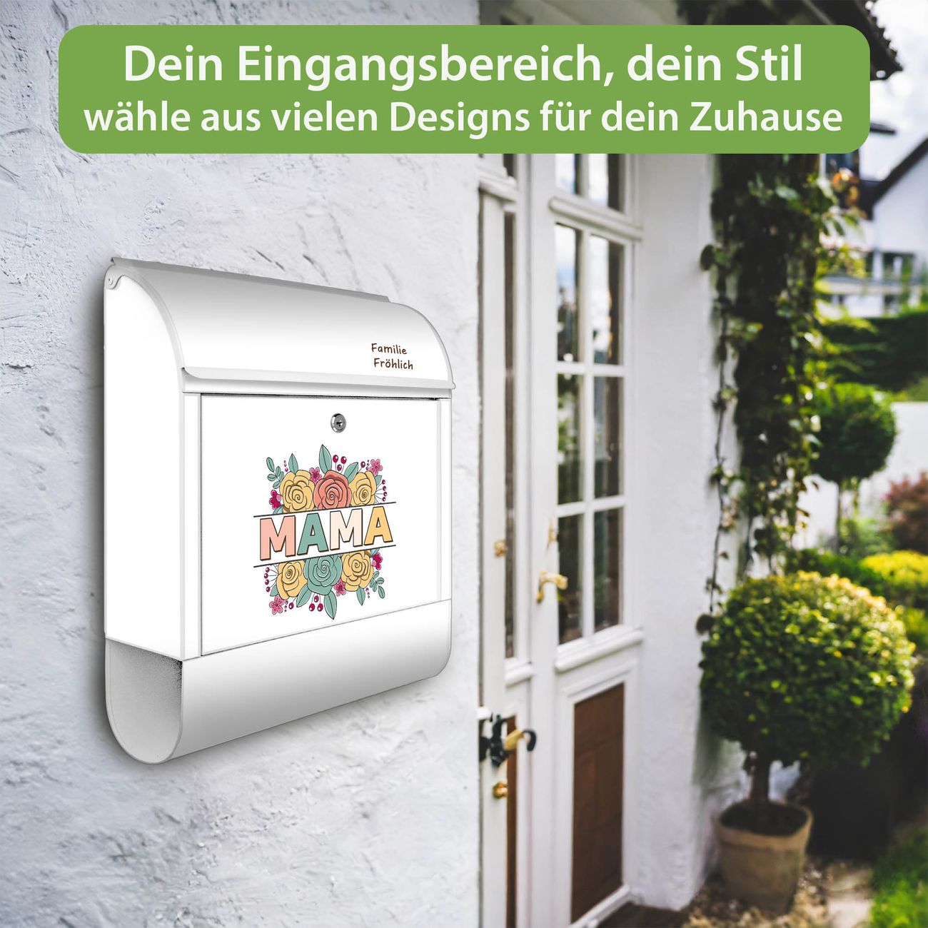 Großer Stahl Briefkasten Motiv Blumengruß für Mama