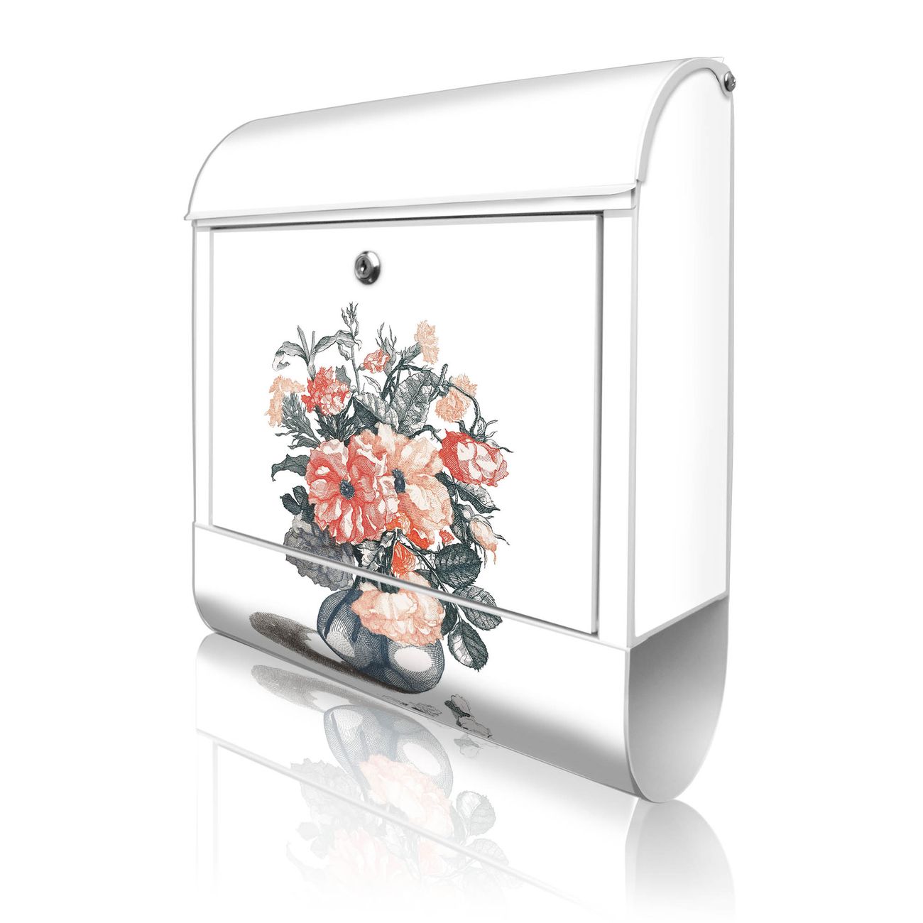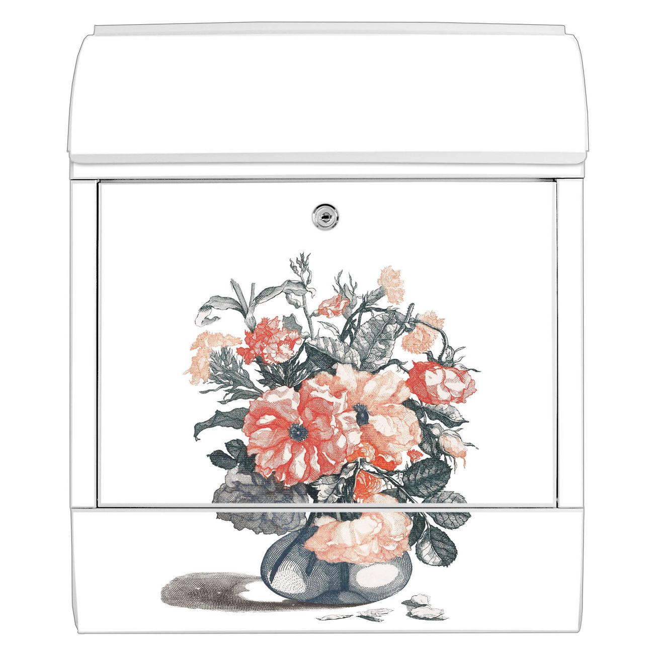 Großer Stahl Briefkasten Motiv Blumenstrauß Vintage