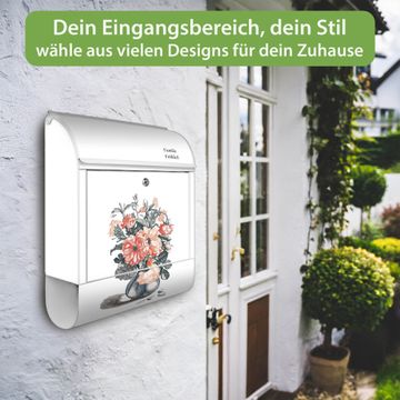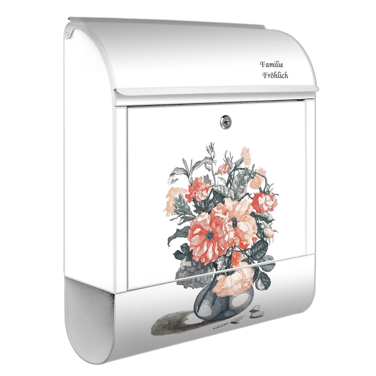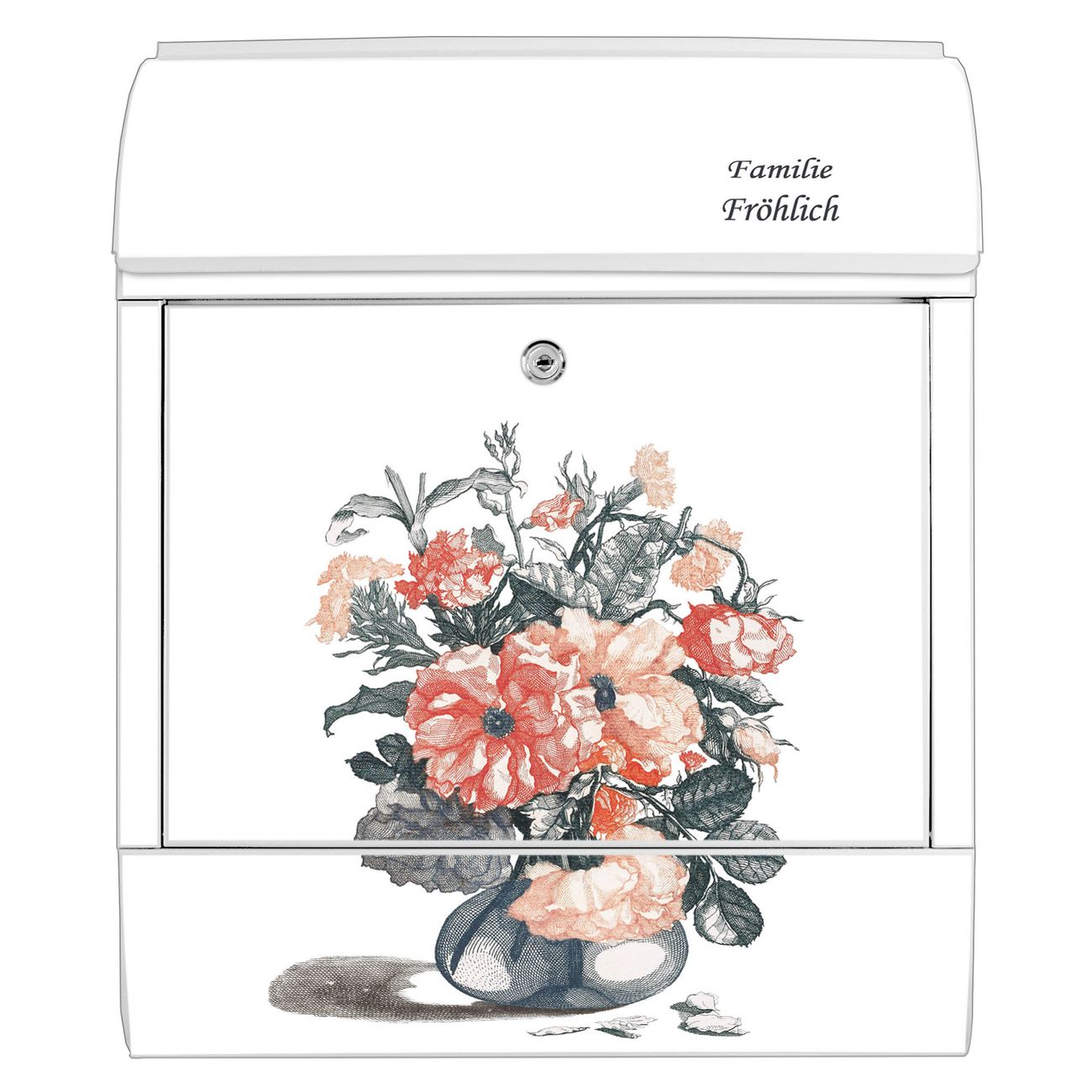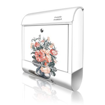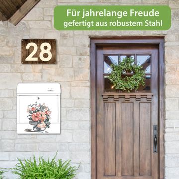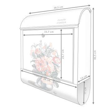 Großer Stahl Briefkasten Motiv Blumenstrauß Vintage