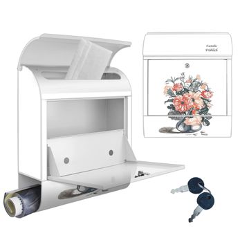 DESIGN: Der Postkasten mit Motiv Motiv Blumenstrauß Vintage hat ein sehr ansprechendes und ausgefallenes Design, damit entlocken Sie Ihren Nachbarn und dem Postboten ein Lächeln. Heben Sie Sich von der tristen grauen Masse ab, ohne auf Funktionalität zu verzichten. DETAILS: Der Postkasten besteht aus pulverbeschichtetem Stahl. Er ist 38x46x12,5cm groß. Das Motiv besteht aus einer wetter- und UV-resistenten Folie, die mit einem Schutzlaminat überzogen ist, sodass der Briefkasten zusätzlich vor Kratzern geschützt ist. Der Briefkasten wird mit Montagematerial, zusätzlich zwei Schlüssel sowie einer Bohrschablone geliefert. NUTZEN: Sie können diesen Briefkasten sowohl als Wandbriefkasten montieren oder einen passenden Ständer kaufen und als Standbriefkasten einbetonieren. Die Größe bietet genügend Platz für Sendungen aller Art, der Einwurf fasst auch größere A4 Sendungen. BANJADO: Ihr Briefkasten wird in Sachsen in einer kleinen Manufaktur von Hand veredelt. Die Motivfolie ist lösungsmittelfrei und schutzlaminiert für einen langen Halt. Wir legen großen Wert auf die Verbindung von Funktionalität und Design. Sie erhalten Handarbeit aus Sachsen.