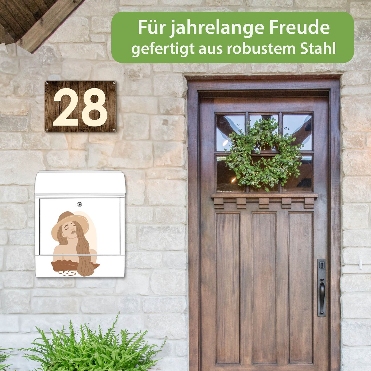 Großer Stahl Briefkasten Motiv Boho Frau
