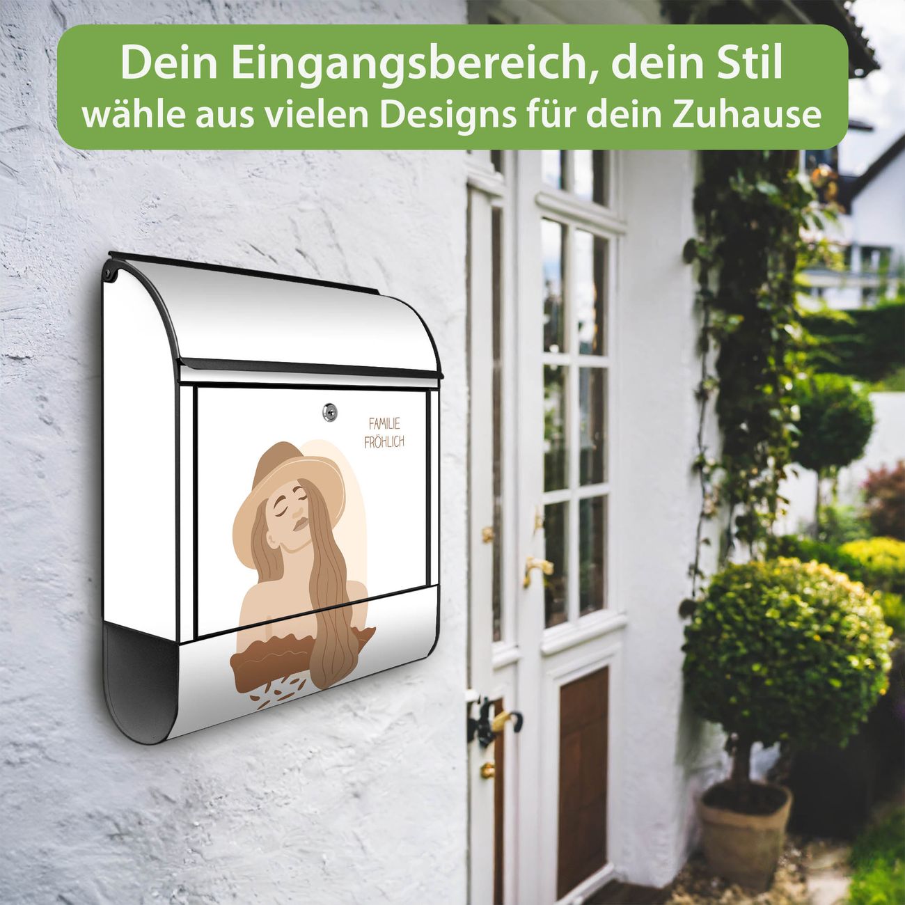 Großer Stahl Briefkasten Motiv Boho Frau