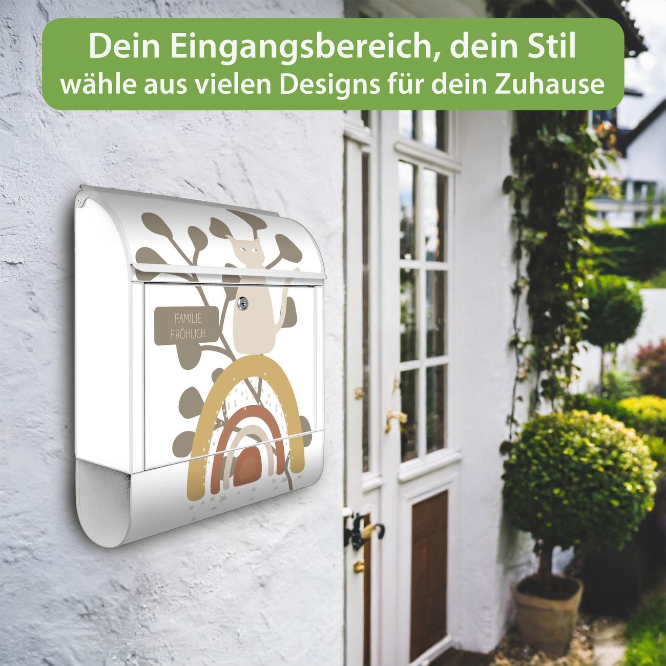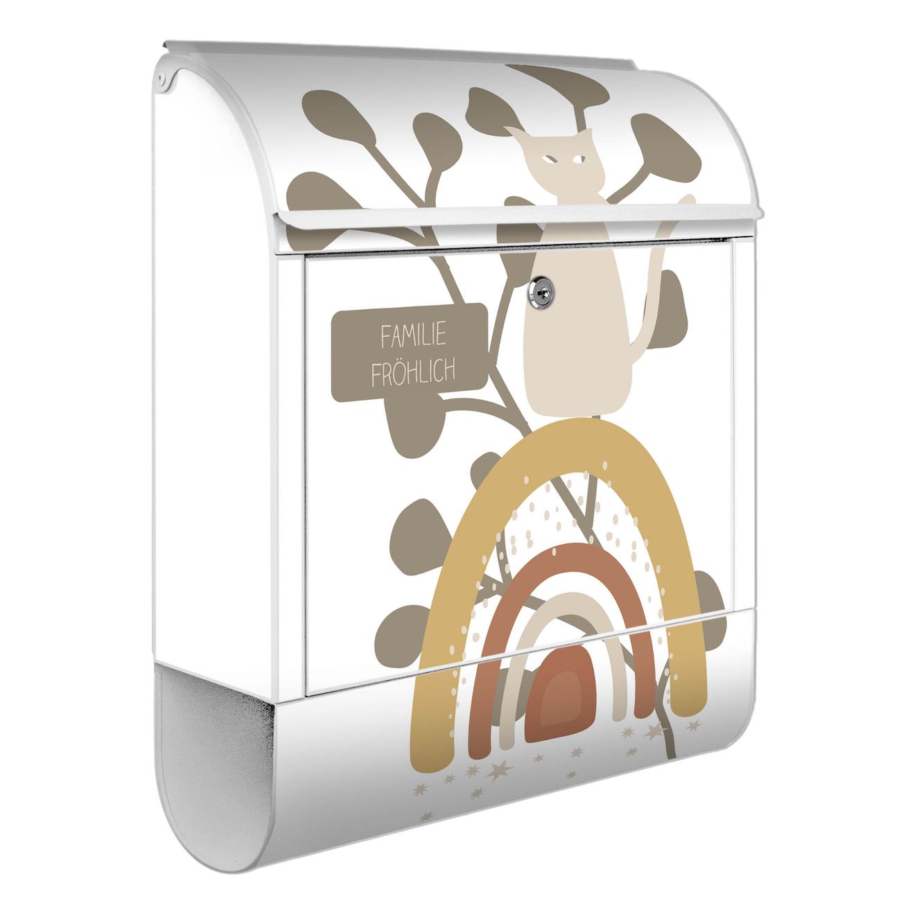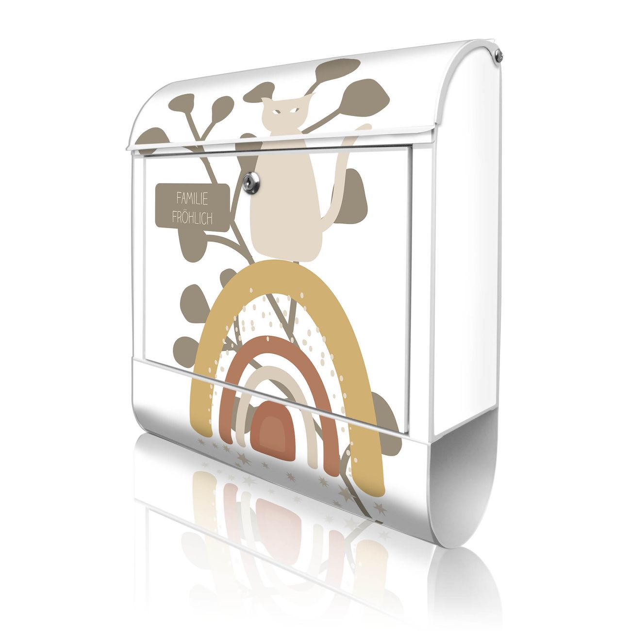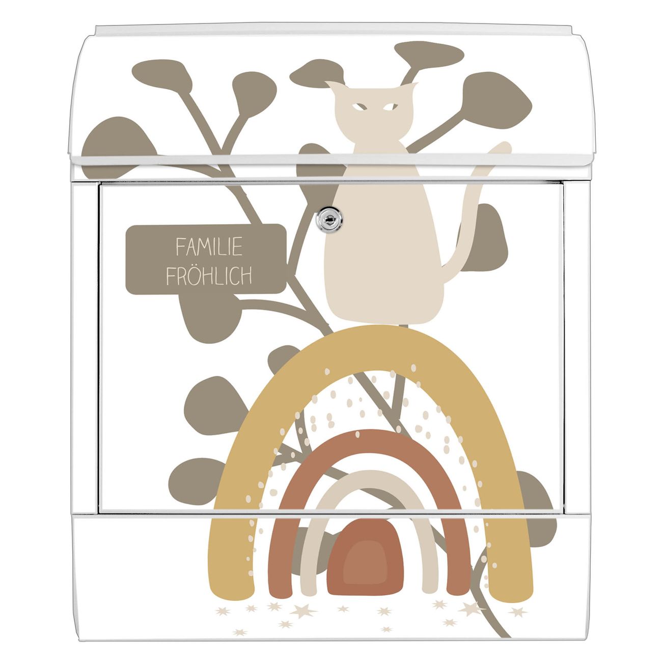 Großer Stahl Briefkasten Motiv Boho Katze Regenbogen