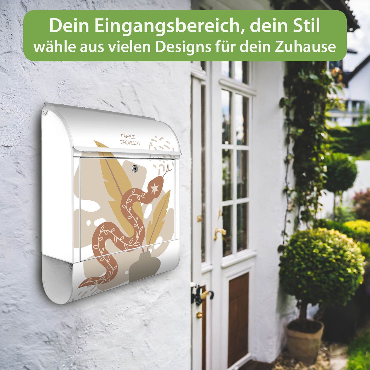Großer Stahl Briefkasten Motiv Boho Schlange Vase