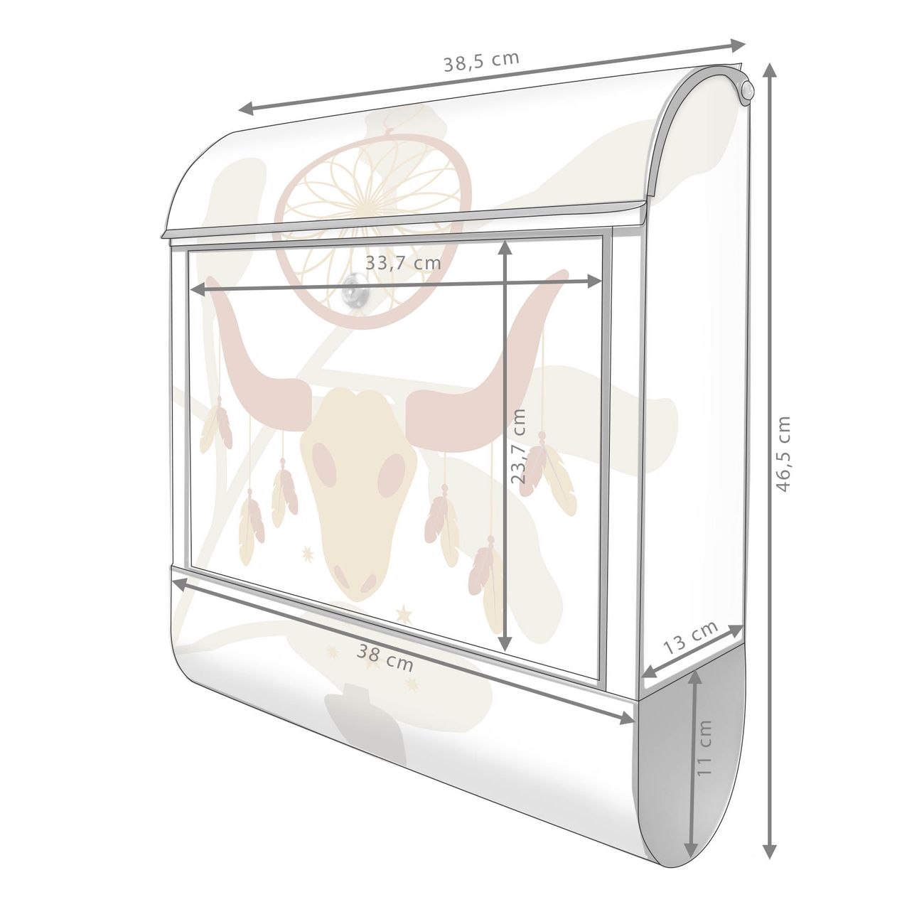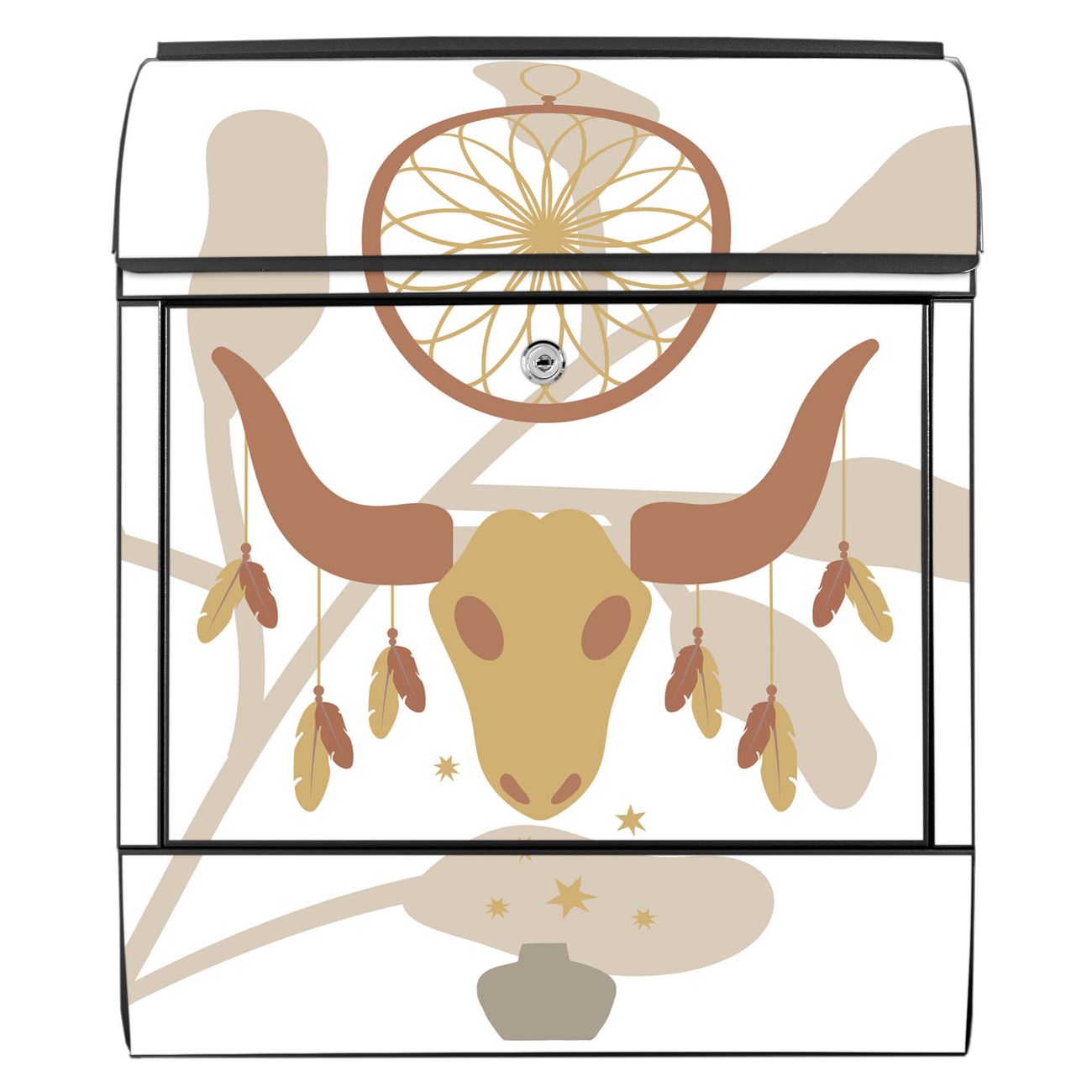 Großer Stahl Briefkasten Motiv Boho Traumfänger Schädel