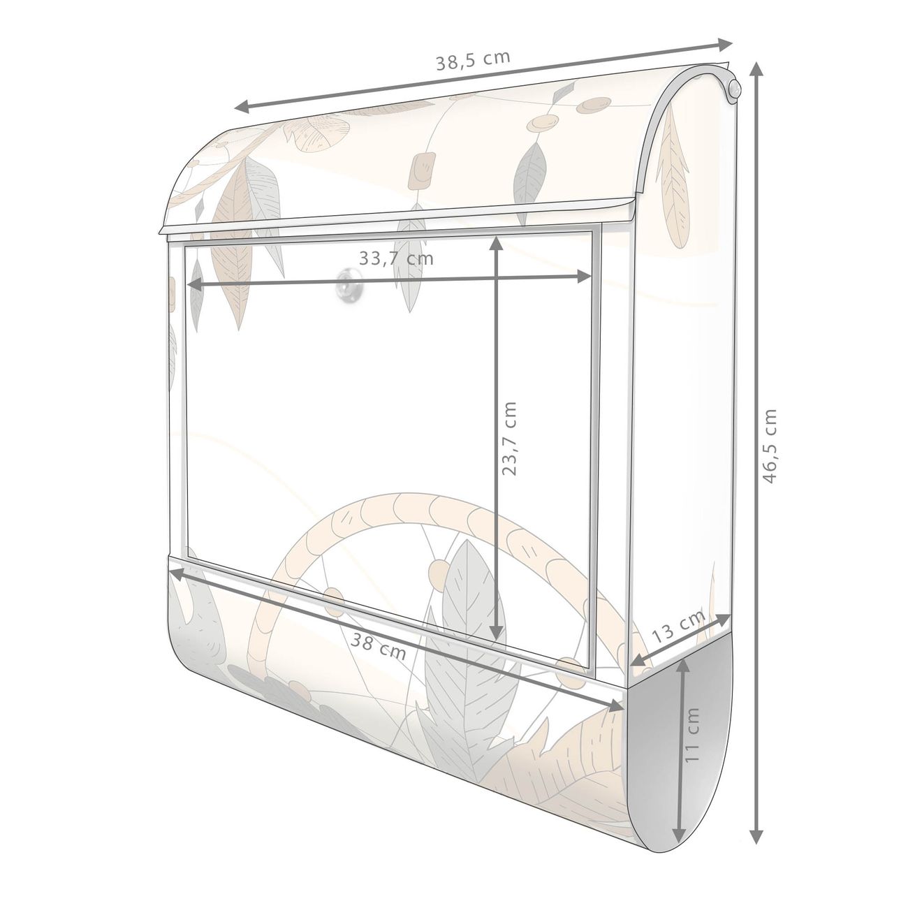 DESIGN: Der Postkasten mit Motiv Motiv Boho Traumfänger hat ein sehr ansprechendes und ausgefallenes Design, damit entlocken Sie Ihren Nachbarn und dem Postboten ein Lächeln. Heben Sie Sich von der tristen grauen Masse ab, ohne auf Funktionalität zu verzichten. DETAILS: Der Postkasten besteht aus pulverbeschichtetem Stahl. Er ist 38x46x12,5cm groß. Das Motiv besteht aus einer wetter- und UV-resistenten Folie, die mit einem Schutzlaminat überzogen ist, sodass der Briefkasten zusätzlich vor Kratzern geschützt ist. Der Briefkasten wird mit Montagematerial, zusätzlich zwei Schlüssel sowie einer Bohrschablone geliefert. NUTZEN: Sie können diesen Briefkasten sowohl als Wandbriefkasten montieren oder einen passenden Ständer kaufen und als Standbriefkasten einbetonieren. Die Größe bietet genügend Platz für Sendungen aller Art, der Einwurf fasst auch größere A4 Sendungen. BANJADO: Ihr Briefkasten wird in Sachsen in einer kleinen Manufaktur von Hand veredelt. Die Motivfolie ist lösungsmittelfrei und schutzlaminiert für einen langen Halt. Wir legen großen Wert auf die Verbindung von Funktionalität und Design. Sie erhalten Handarbeit aus Sachsen.