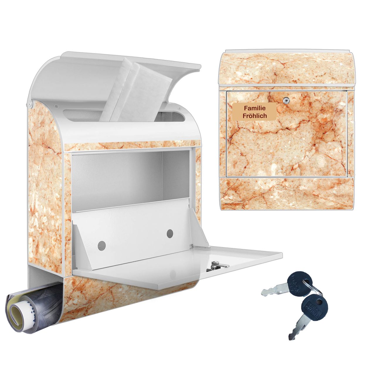 Großer Stahl Briefkasten Motiv Brauner Marmor Struktur