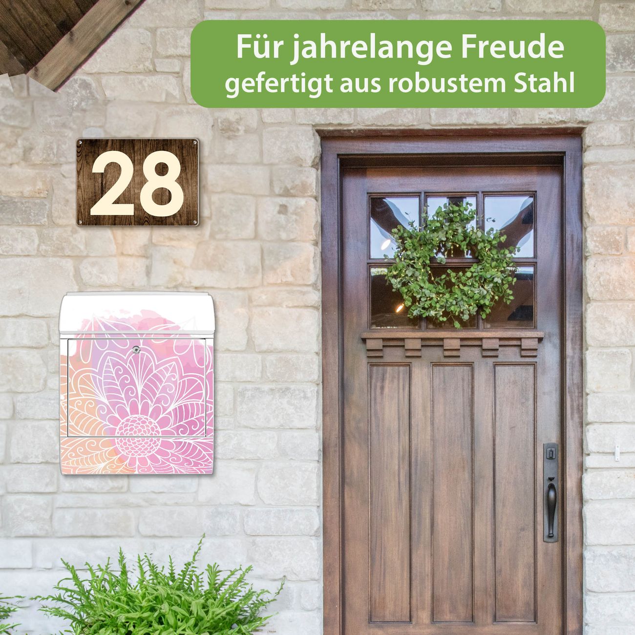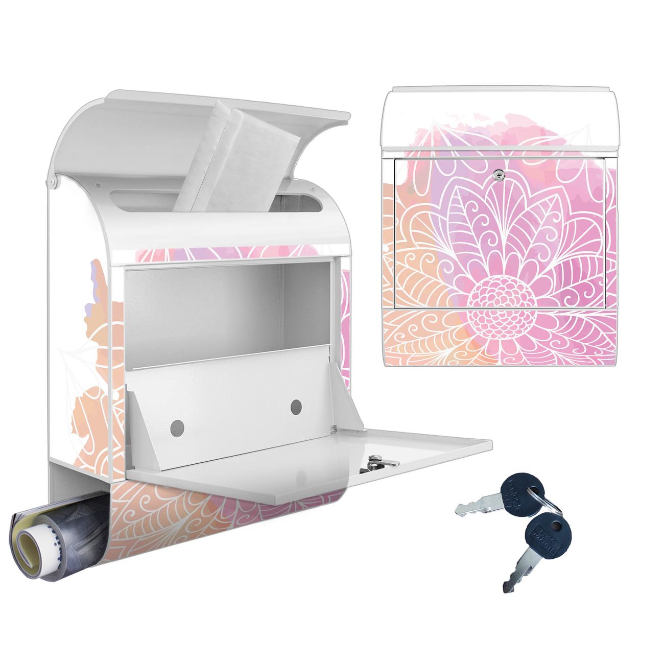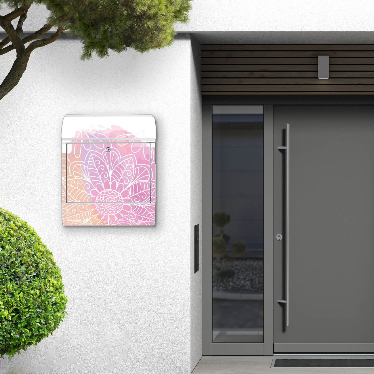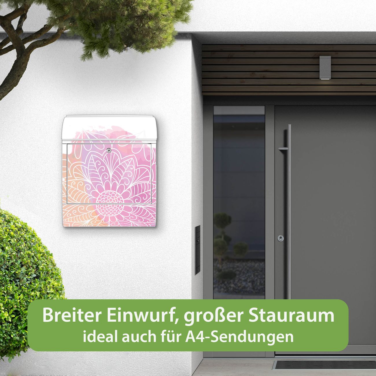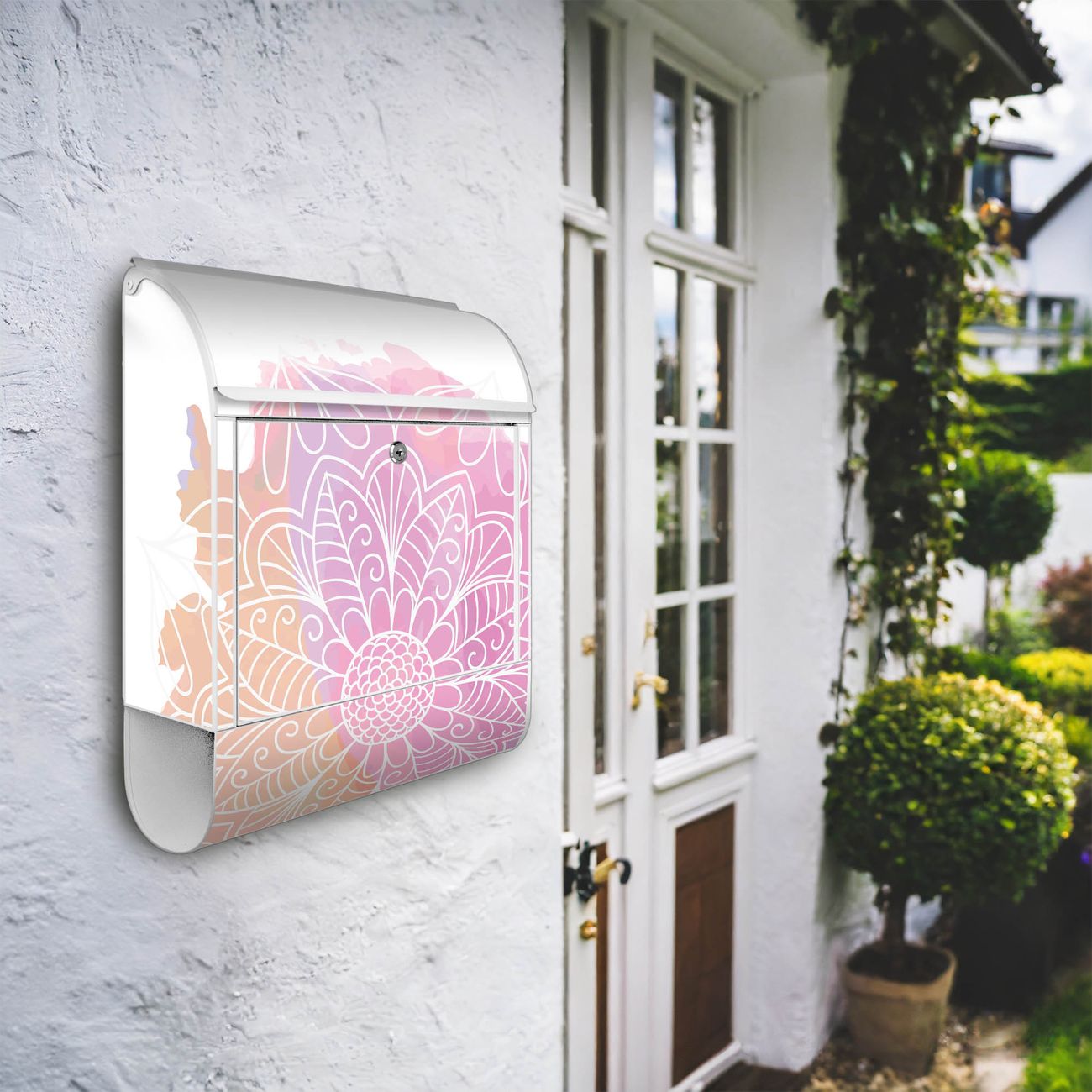 Großer Stahl Briefkasten Motiv Buntes Mandala
