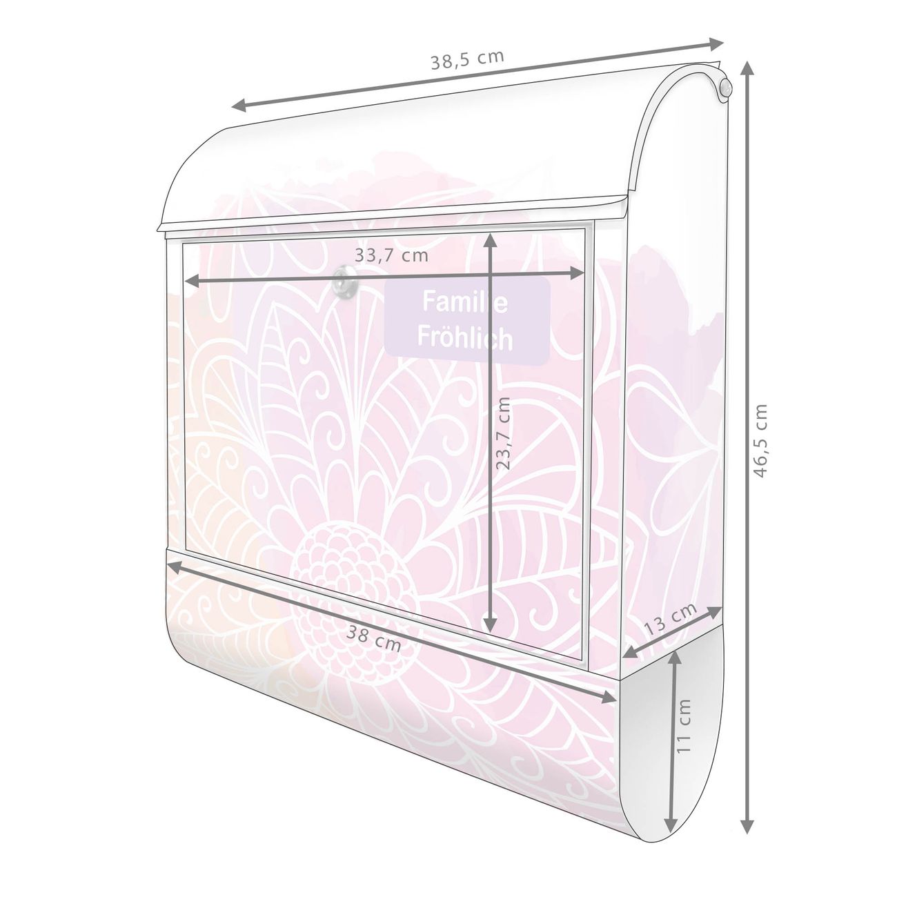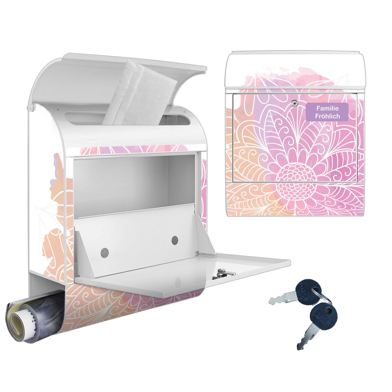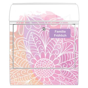 Großer Stahl Briefkasten Motiv Buntes Mandala
