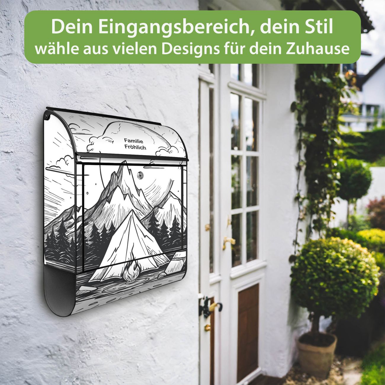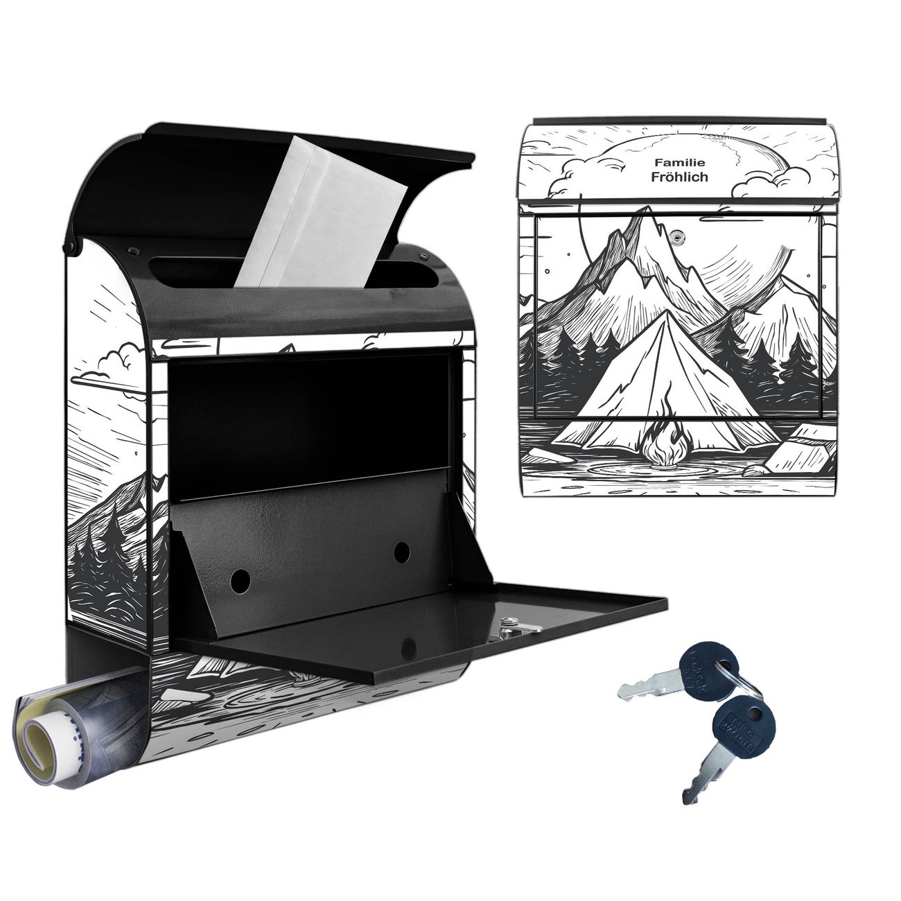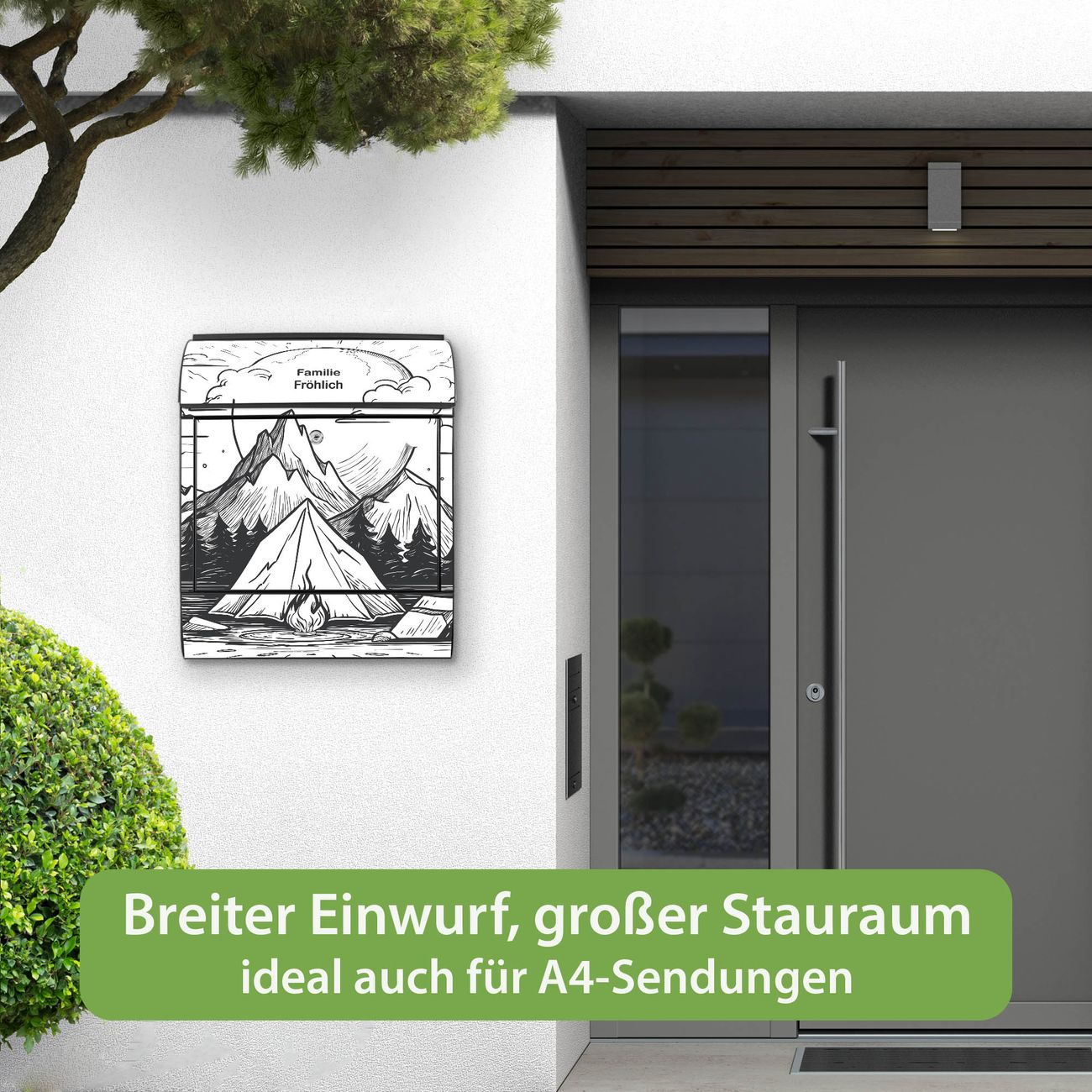 Großer Stahl Briefkasten Motiv Camping im Mondschein