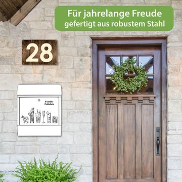 DESIGN: Der Postkasten mit Motiv Motiv Cocktail Skizzen hat ein sehr ansprechendes und ausgefallenes Design, damit entlocken Sie Ihren Nachbarn und dem Postboten ein Lächeln. Heben Sie Sich von der tristen grauen Masse ab, ohne auf Funktionalität zu verzichten. DETAILS: Der Postkasten besteht aus pulverbeschichtetem Stahl. Er ist 38x46x12,5cm groß. Das Motiv besteht aus einer wetter- und UV-resistenten Folie, die mit einem Schutzlaminat überzogen ist, sodass der Briefkasten zusätzlich vor Kratzern geschützt ist. Der Briefkasten wird mit Montagematerial, zusätzlich zwei Schlüssel sowie einer Bohrschablone geliefert. NUTZEN: Sie können diesen Briefkasten sowohl als Wandbriefkasten montieren oder einen passenden Ständer kaufen und als Standbriefkasten einbetonieren. Die Größe bietet genügend Platz für Sendungen aller Art, der Einwurf fasst auch größere A4 Sendungen. BANJADO: Ihr Briefkasten wird in Sachsen in einer kleinen Manufaktur von Hand veredelt. Die Motivfolie ist lösungsmittelfrei und schutzlaminiert für einen langen Halt. Wir legen großen Wert auf die Verbindung von Funktionalität und Design. Sie erhalten Handarbeit aus Sachsen.
