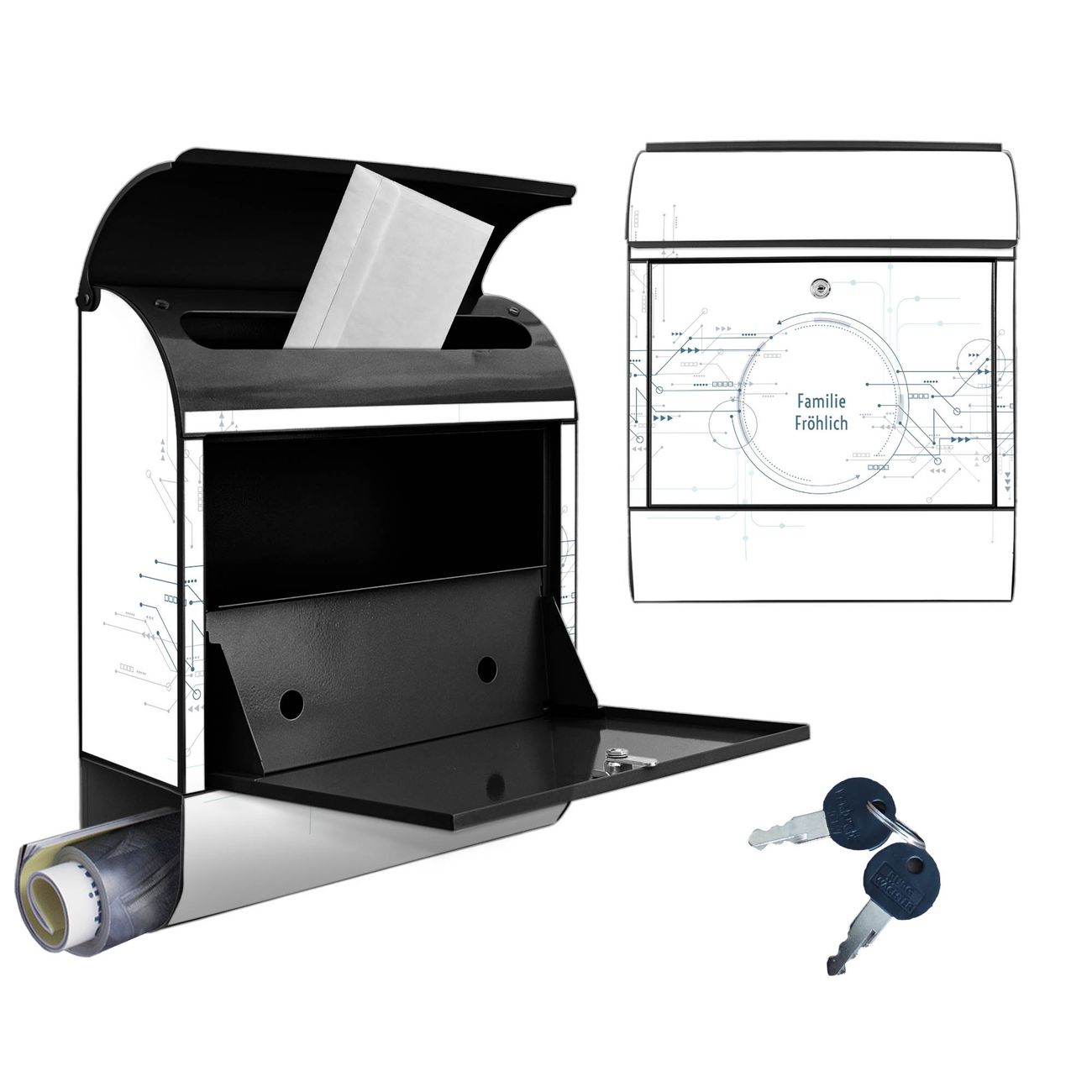 Großer Stahl Briefkasten Motiv Digitales Netzwerk 3