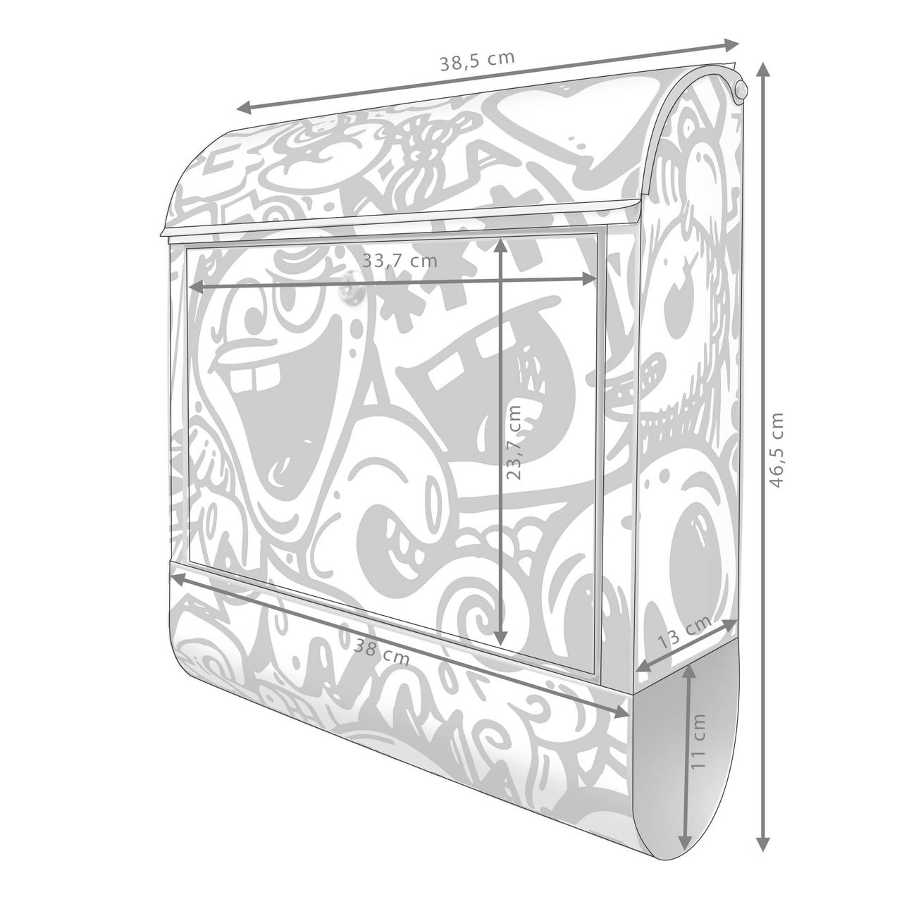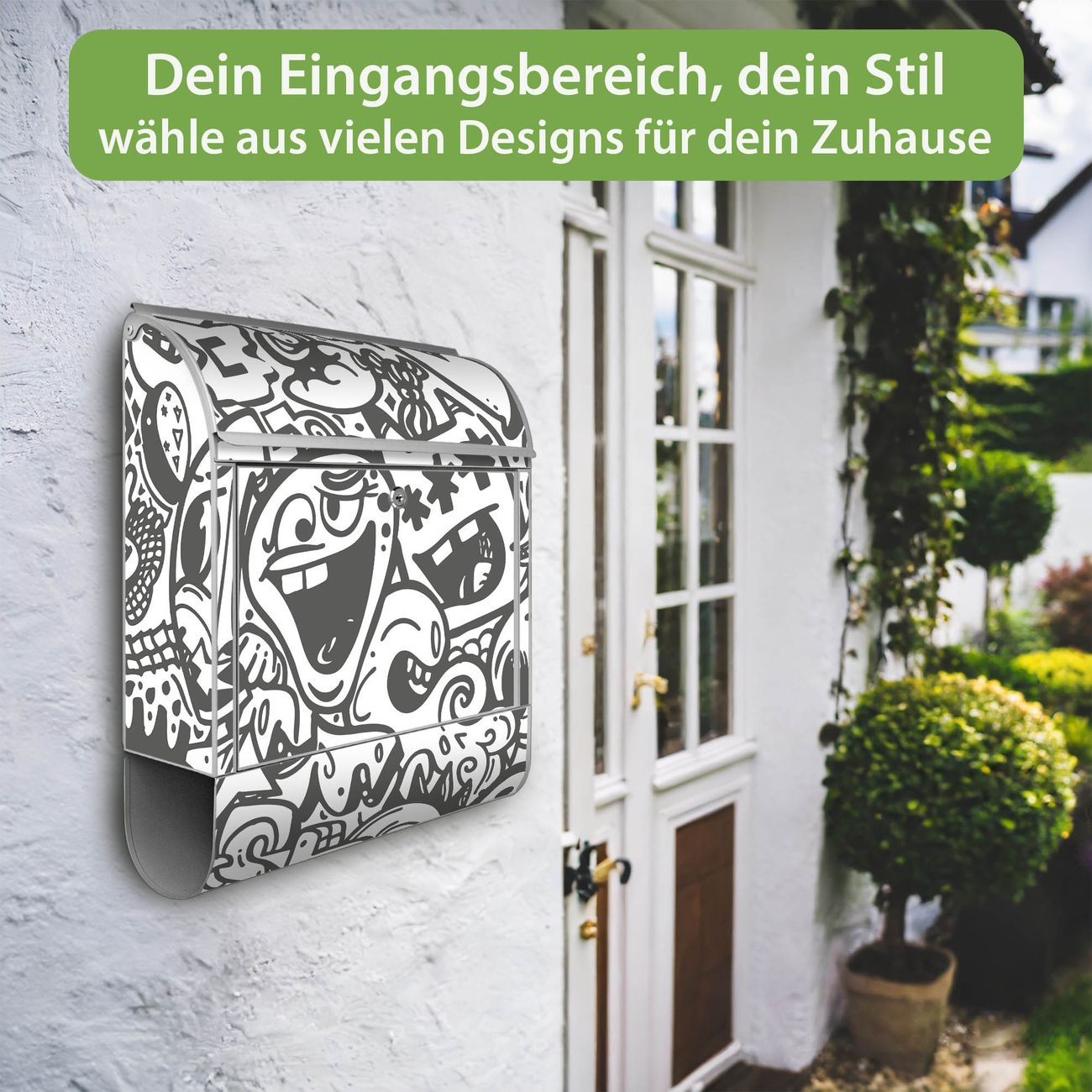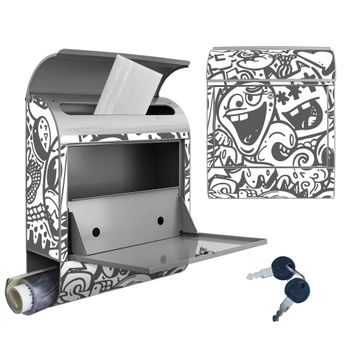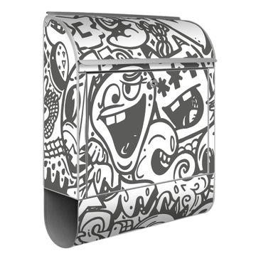 Großer Stahl Briefkasten Motiv Doodle Verrückt