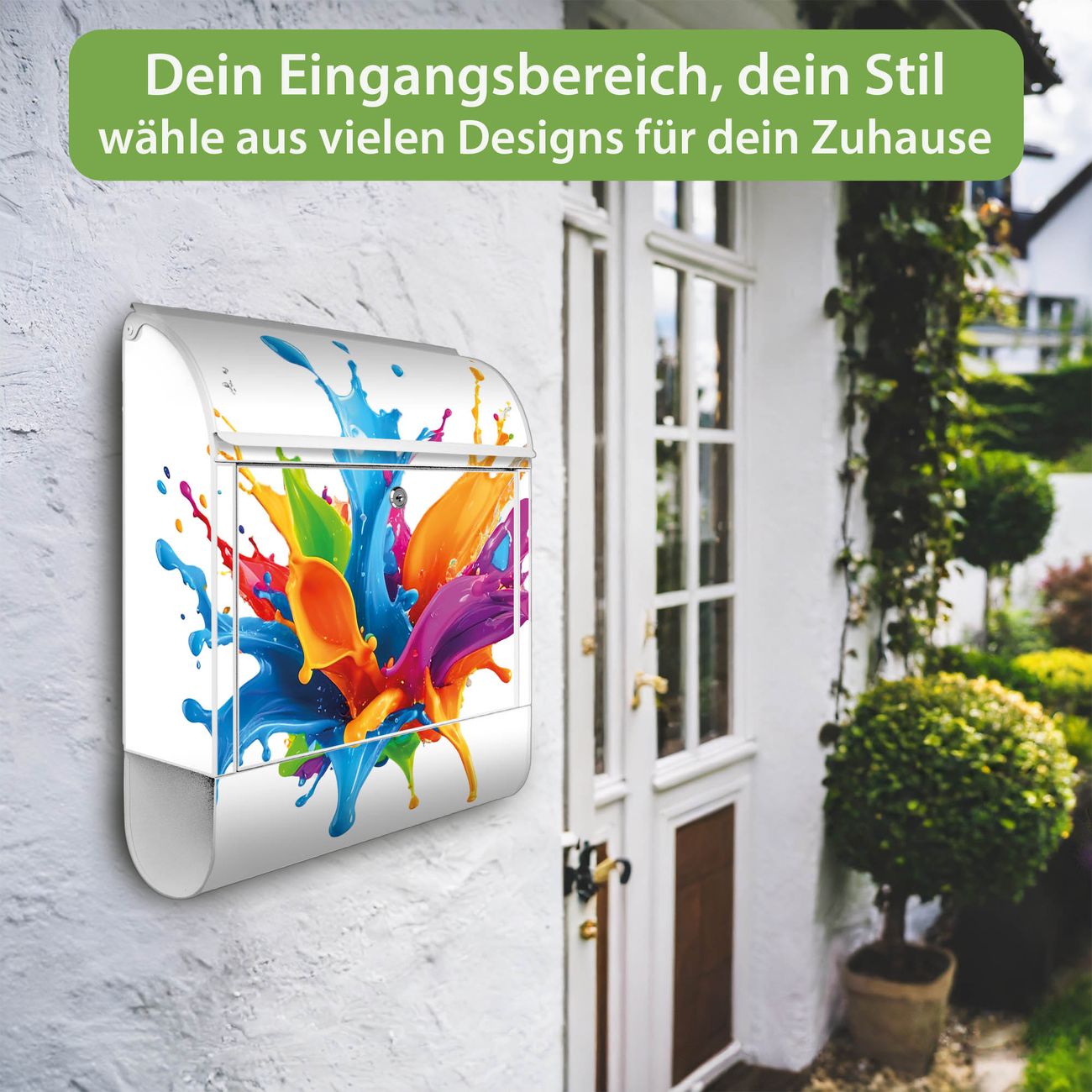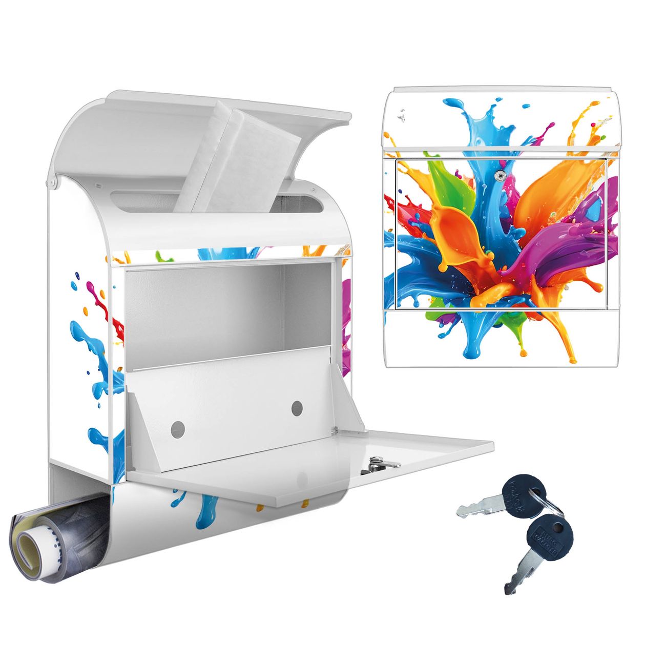 Großer Stahl Briefkasten Motiv Farbspritzer-Explosion