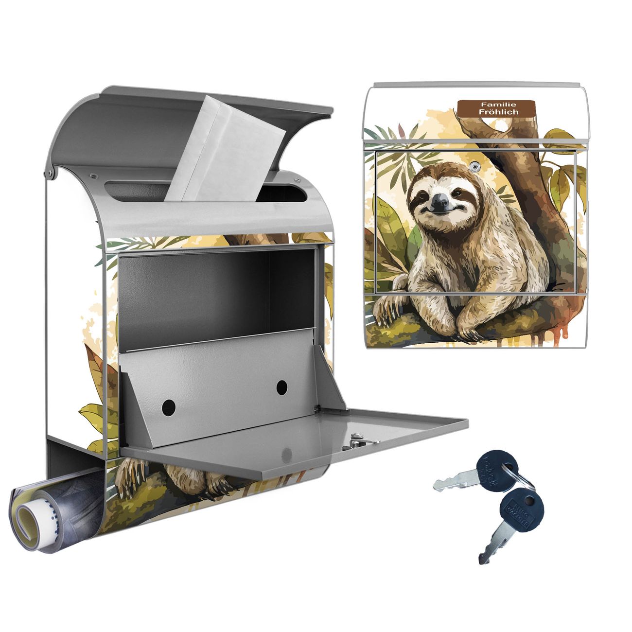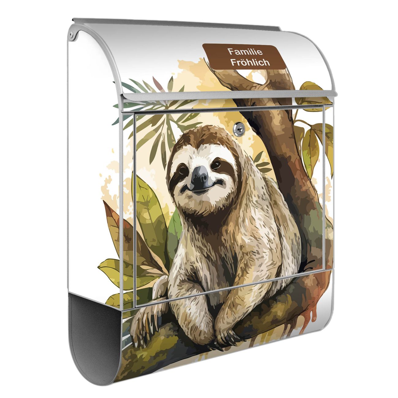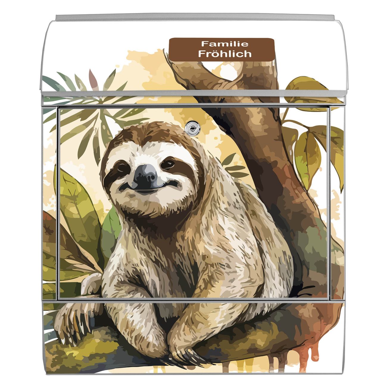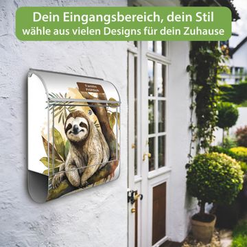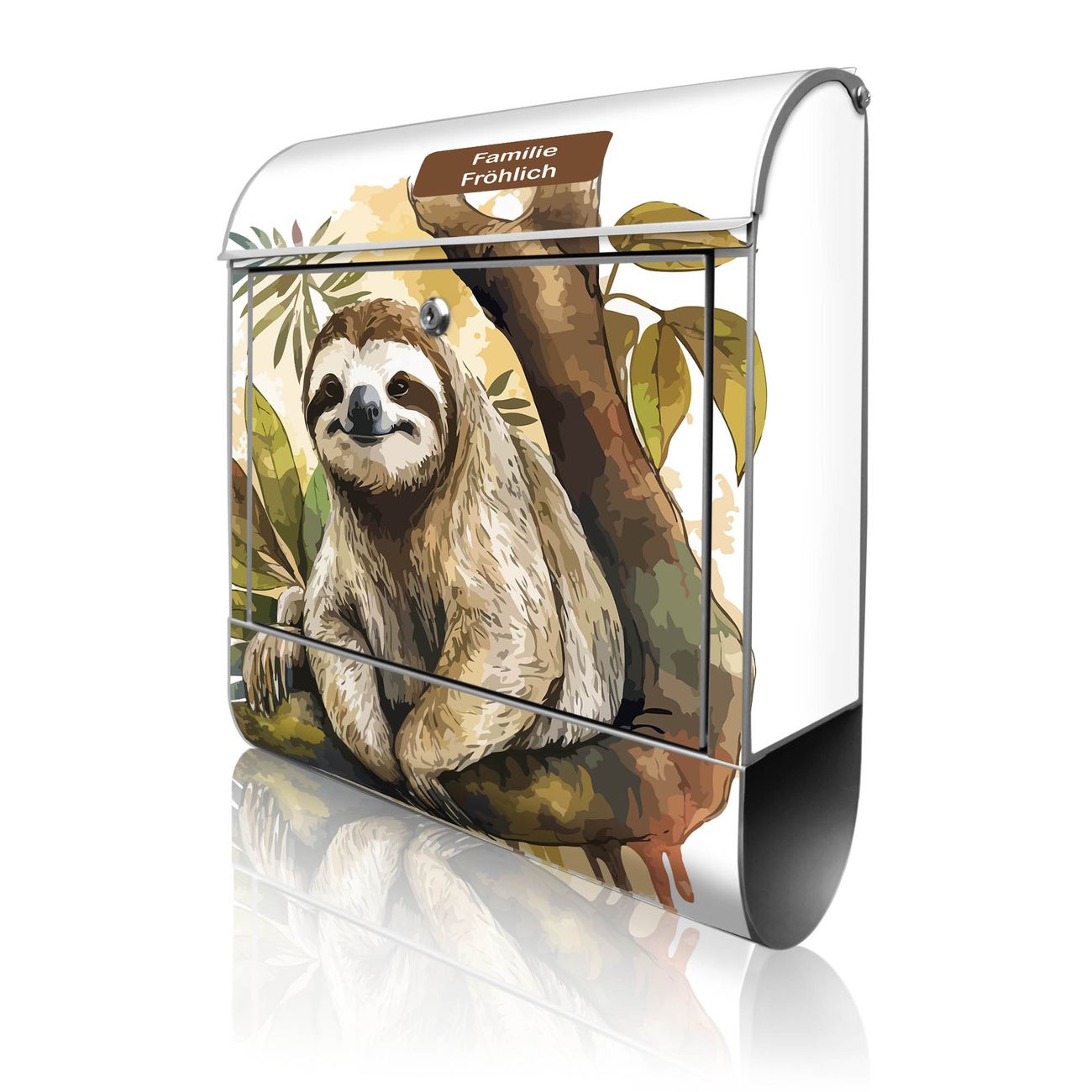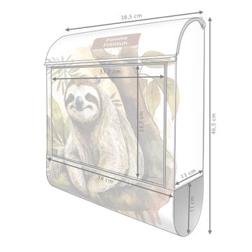 Großer Stahl Briefkasten Motiv Faultier mit Blütenmähne