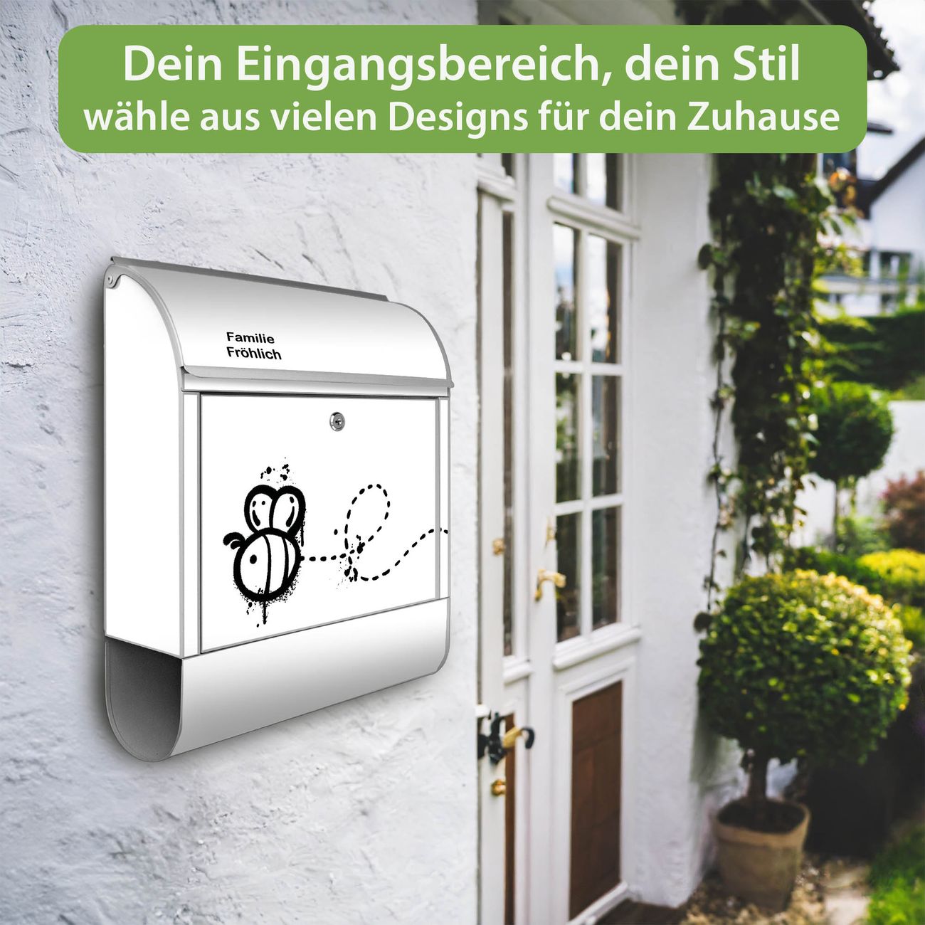 Großer Stahl Briefkasten Motiv Fliegende Biene Graffiti