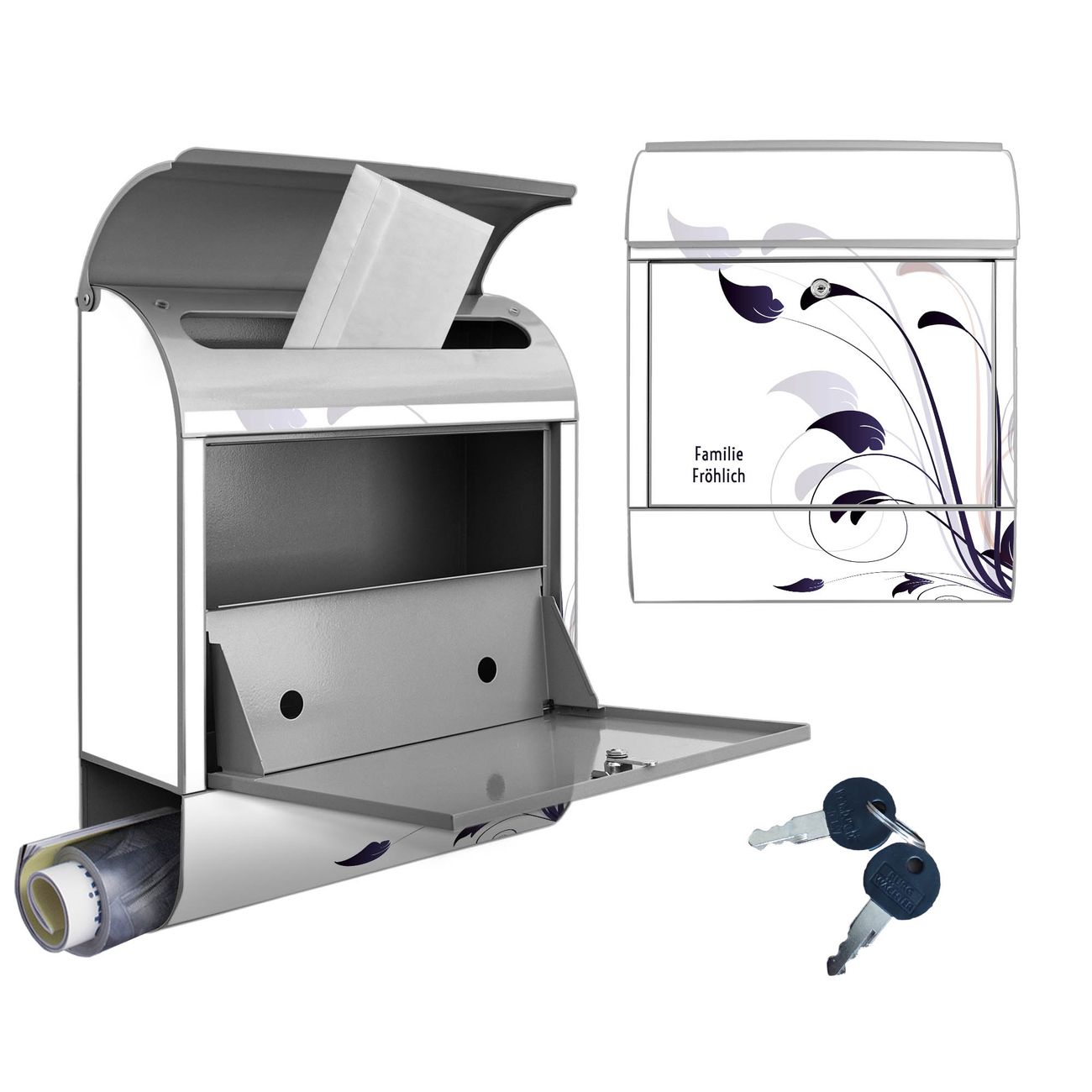 Großer Stahl Briefkasten Motiv Florale Eleganz