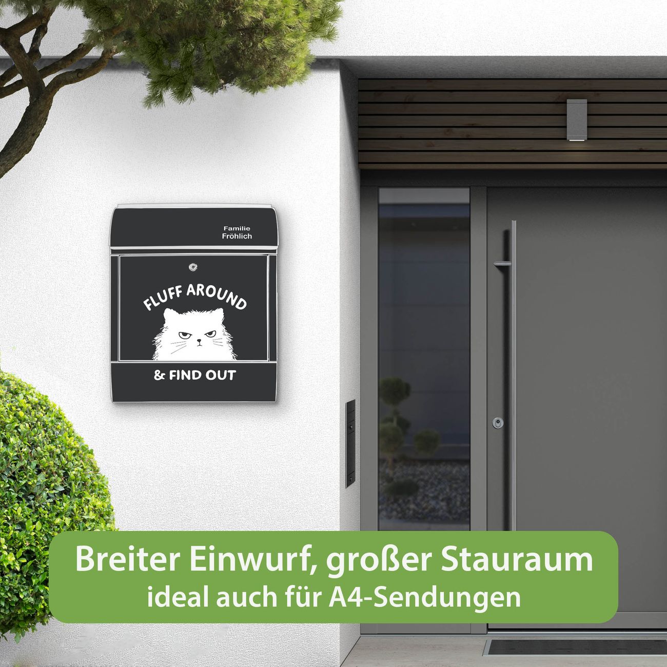 Großer Stahl Briefkasten Motiv Fluff Around Cat