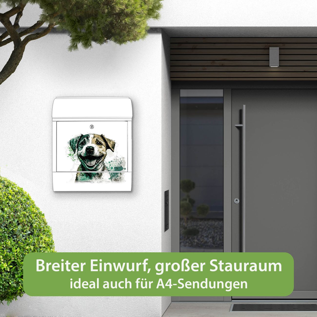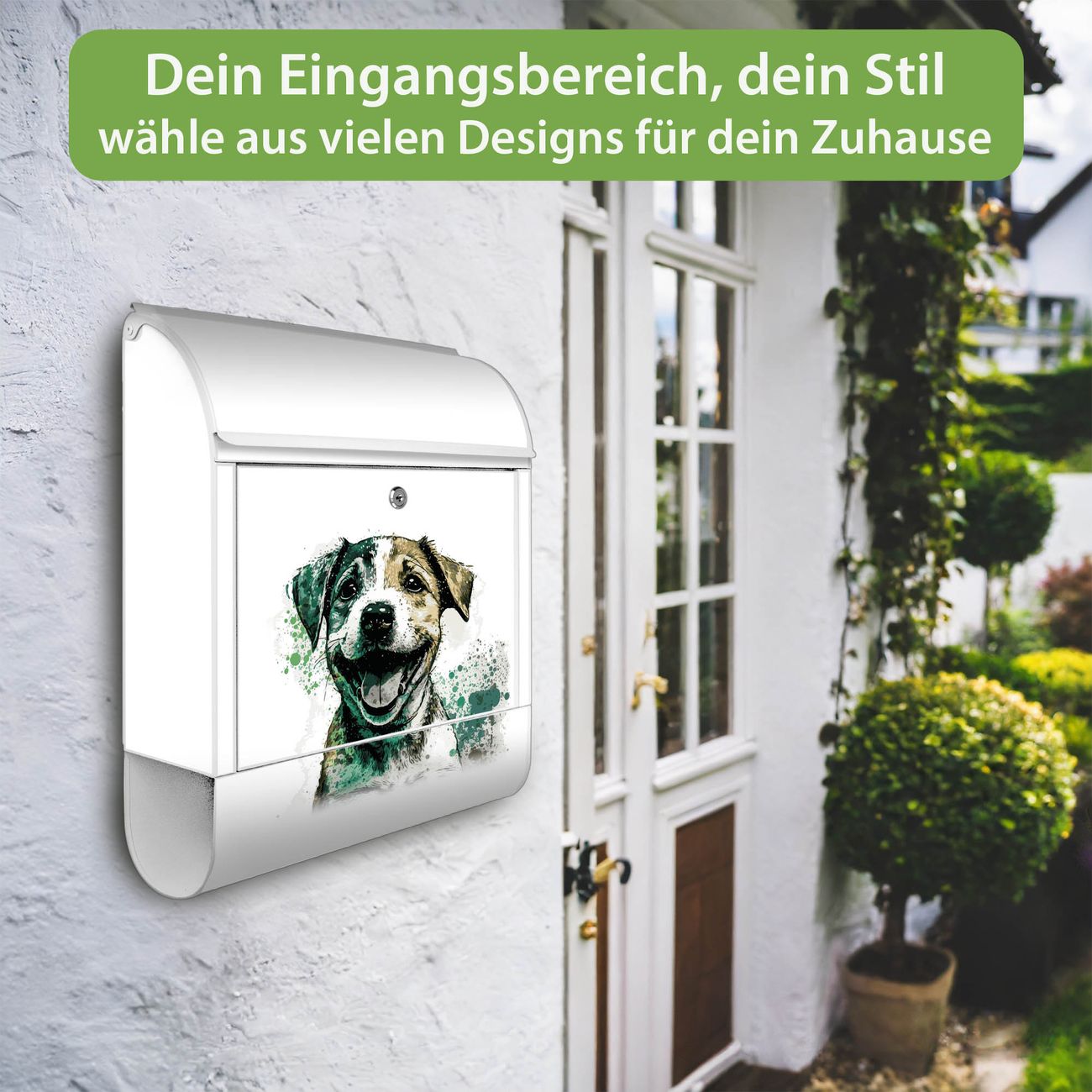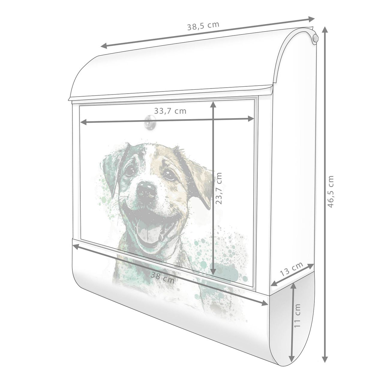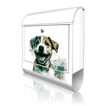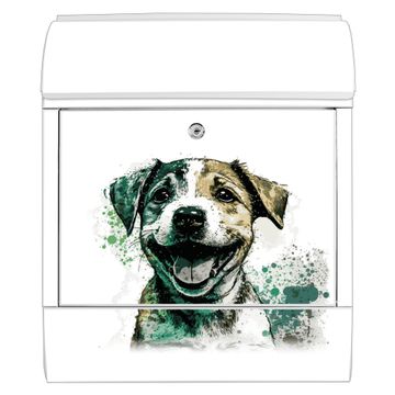 Großer Stahl Briefkasten Motiv Fröhlicher Welpe Aquarell