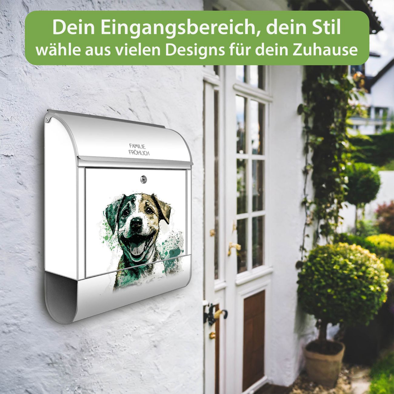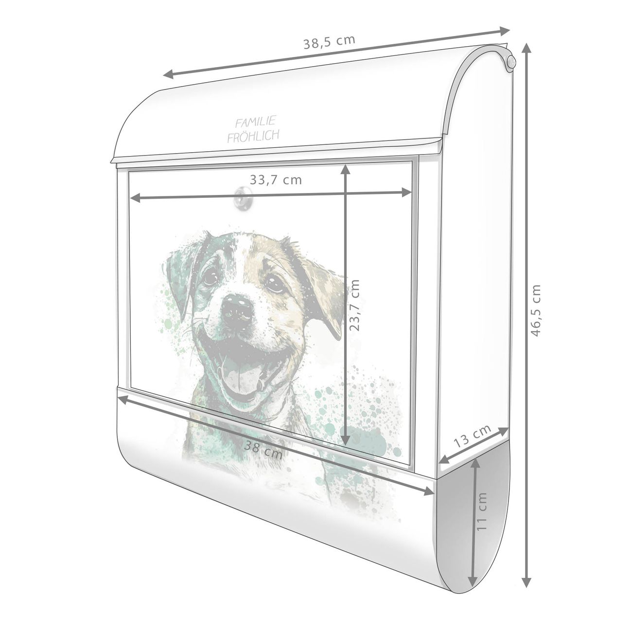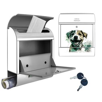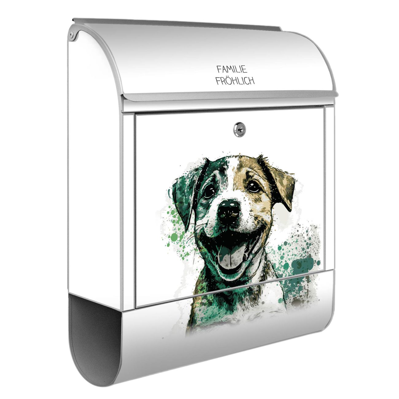 Großer Stahl Briefkasten Motiv Fröhlicher Welpe Aquarell
