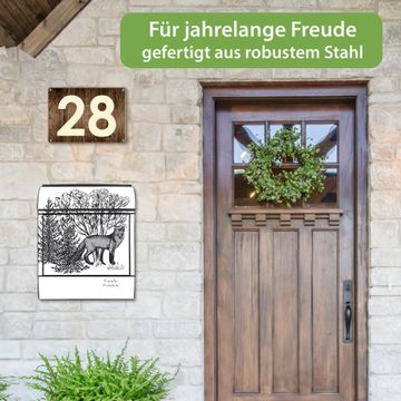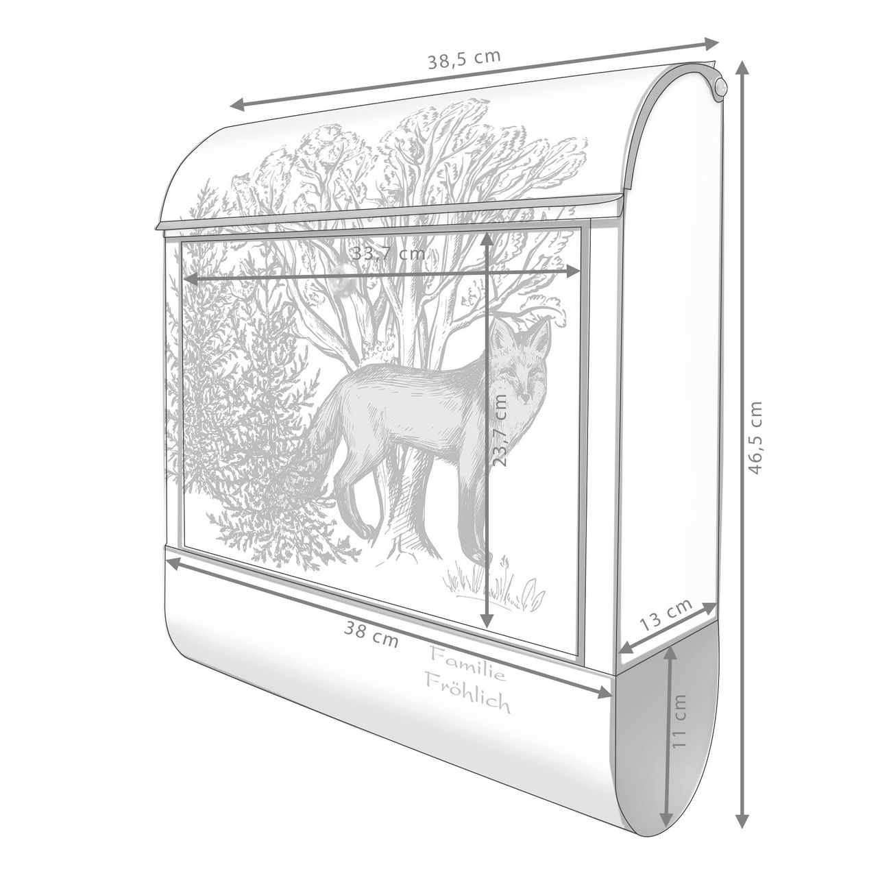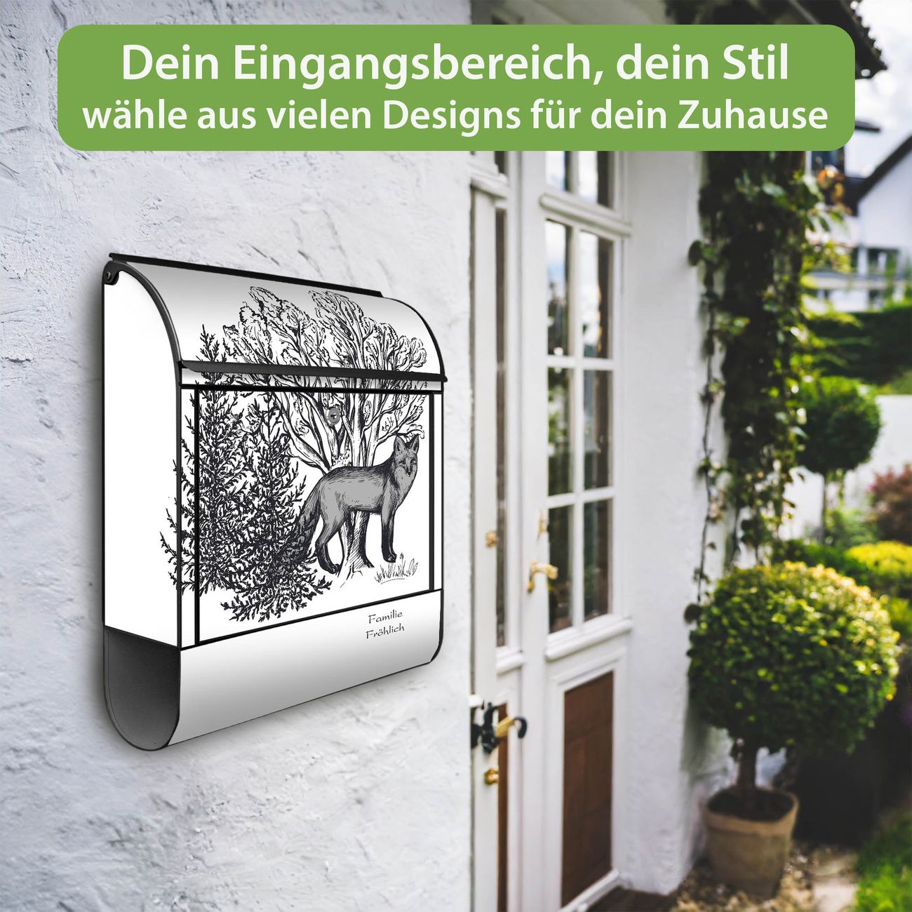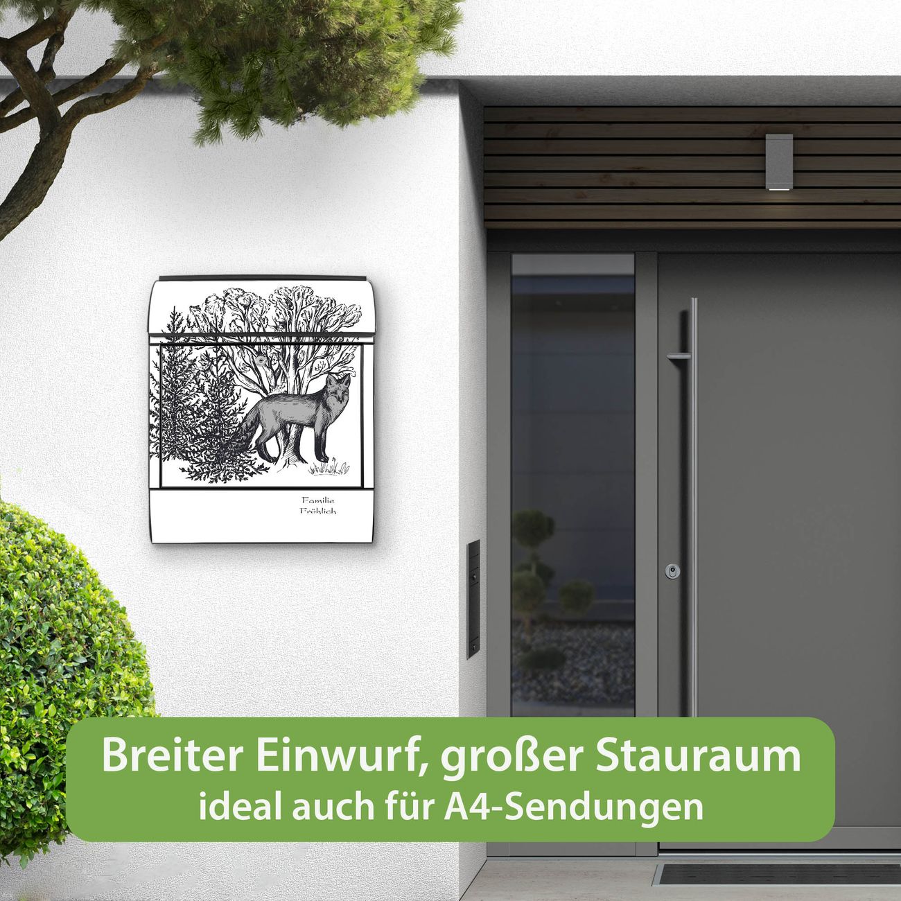 Großer Stahl Briefkasten Motiv Fuchs in Schwarz-Weiß