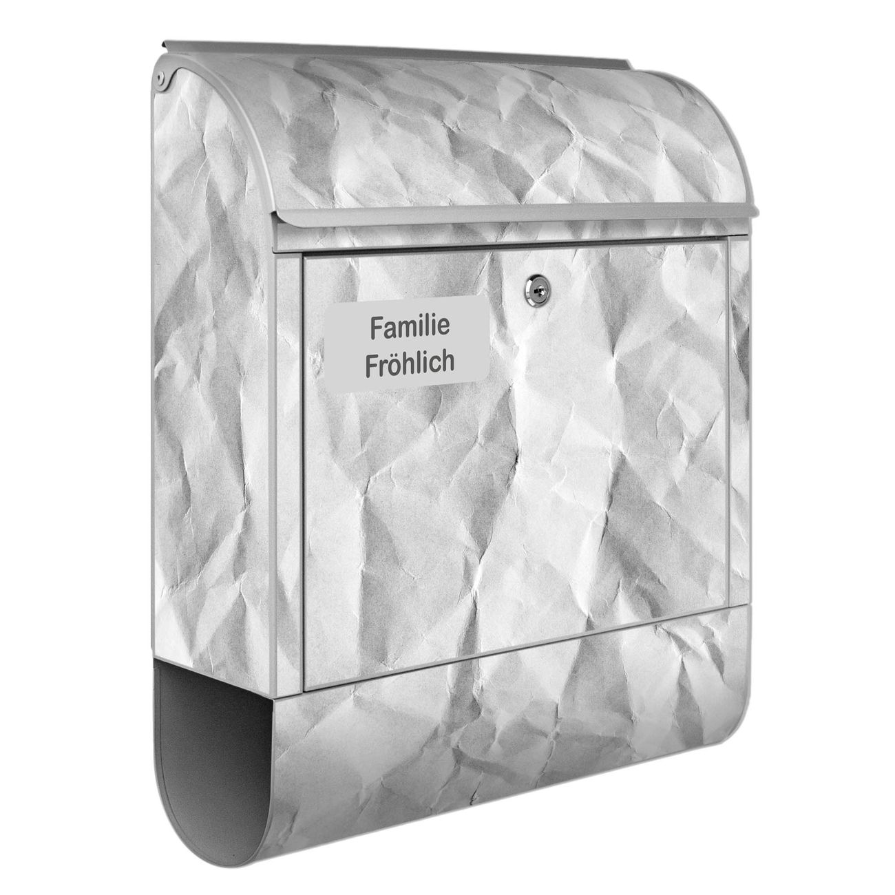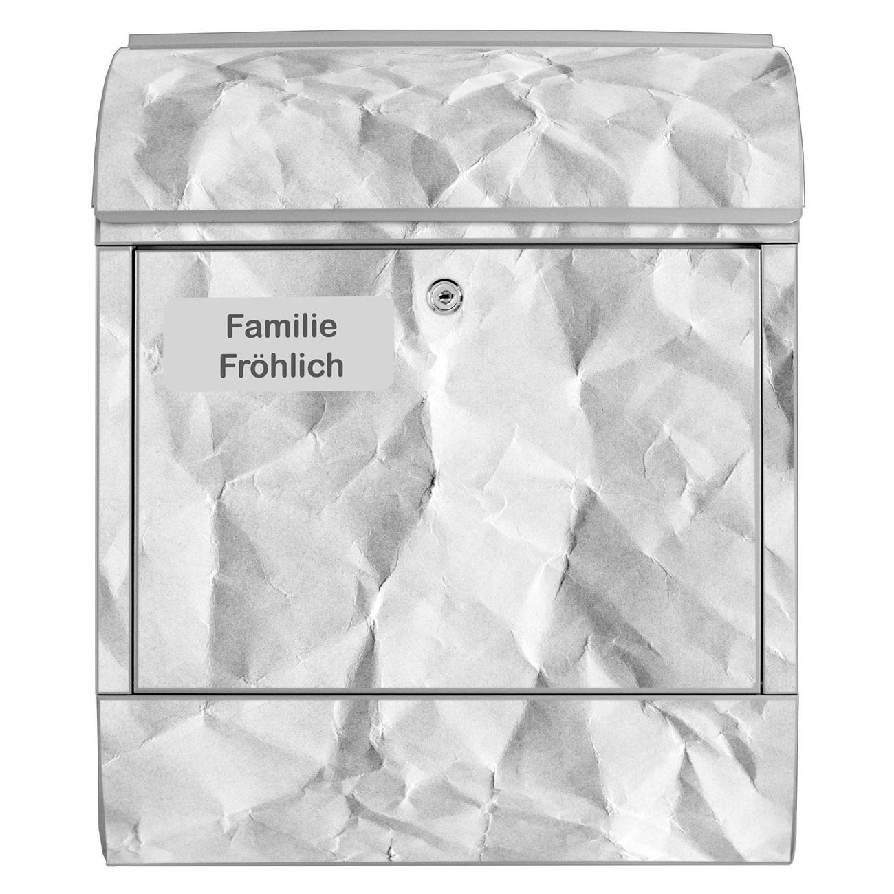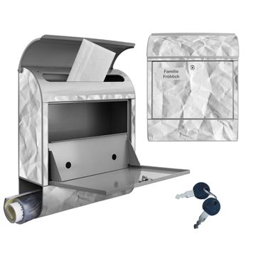Großer Stahl Briefkasten Motiv Geknittertes Papier Grau
