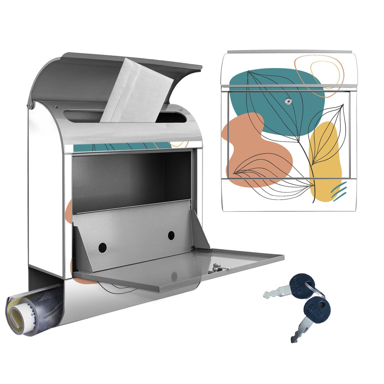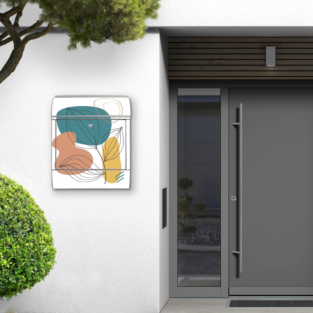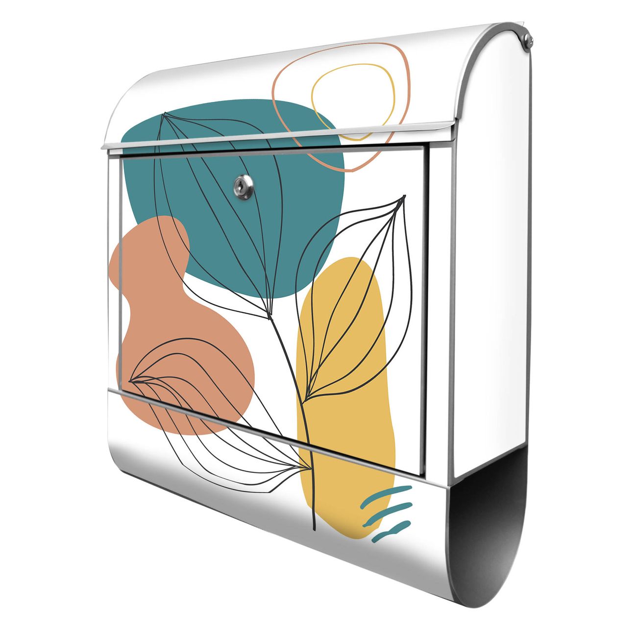Großer Stahl Briefkasten Motiv Geometrische Blätter Lineart