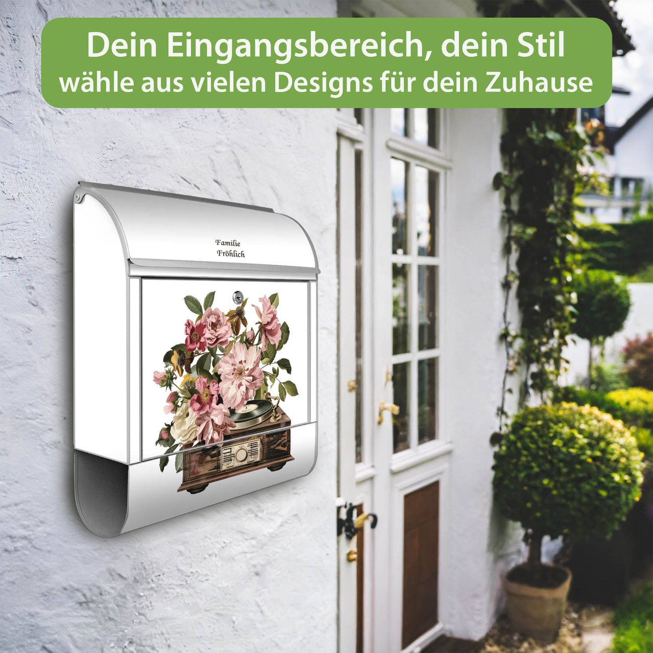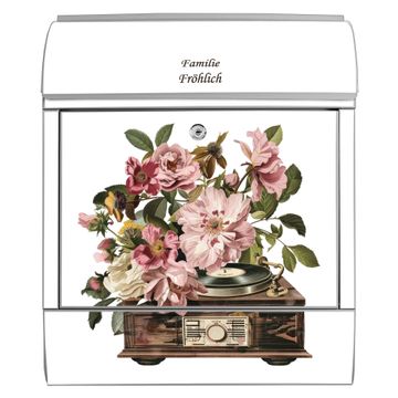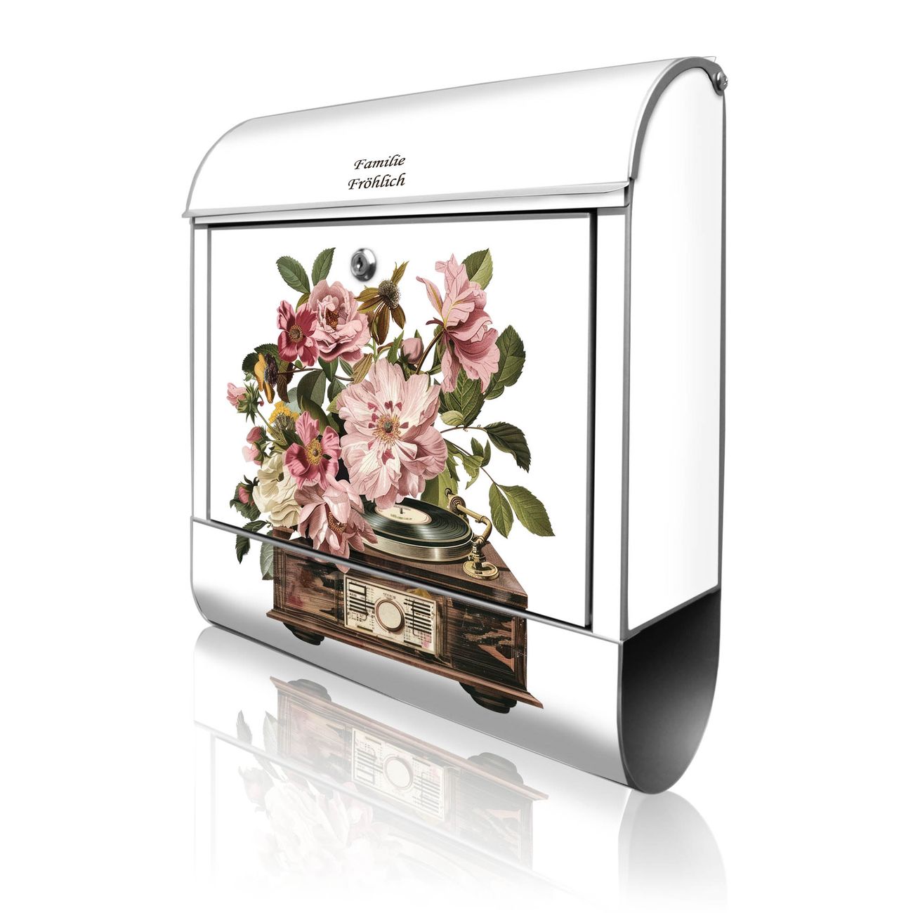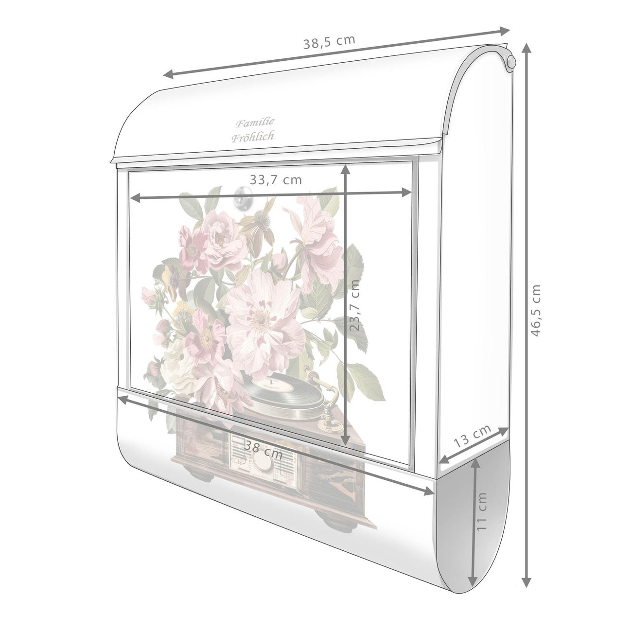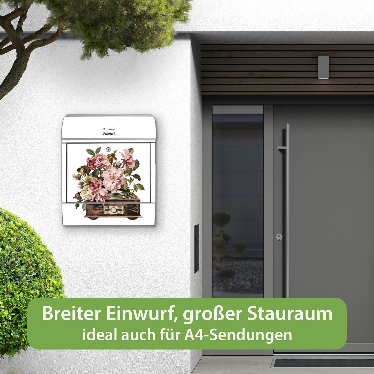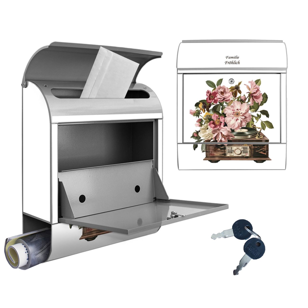 Großer Stahl Briefkasten Motiv Grammophon Vintage