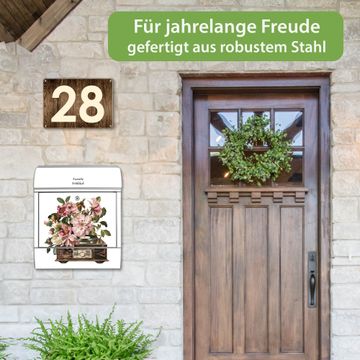DESIGN: Der Postkasten mit Motiv Motiv Grammophon Vintage hat ein sehr ansprechendes und ausgefallenes Design, damit entlocken Sie Ihren Nachbarn und dem Postboten ein Lächeln. Heben Sie Sich von der tristen grauen Masse ab, ohne auf Funktionalität zu verzichten. DETAILS: Der Postkasten besteht aus pulverbeschichtetem Stahl. Er ist 38x46x12,5cm groß. Das Motiv besteht aus einer wetter- und UV-resistenten Folie, die mit einem Schutzlaminat überzogen ist, sodass der Briefkasten zusätzlich vor Kratzern geschützt ist. Der Briefkasten wird mit Montagematerial, zusätzlich zwei Schlüssel sowie einer Bohrschablone geliefert. NUTZEN: Sie können diesen Briefkasten sowohl als Wandbriefkasten montieren oder einen passenden Ständer kaufen und als Standbriefkasten einbetonieren. Die Größe bietet genügend Platz für Sendungen aller Art, der Einwurf fasst auch größere A4 Sendungen. BANJADO: Ihr Briefkasten wird in Sachsen in einer kleinen Manufaktur von Hand veredelt. Die Motivfolie ist lösungsmittelfrei und schutzlaminiert für einen langen Halt. Wir legen großen Wert auf die Verbindung von Funktionalität und Design. Sie erhalten Handarbeit aus Sachsen.