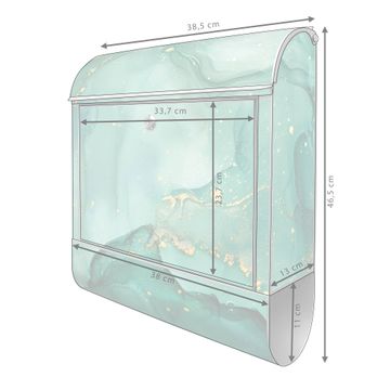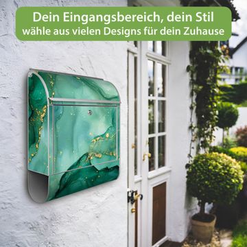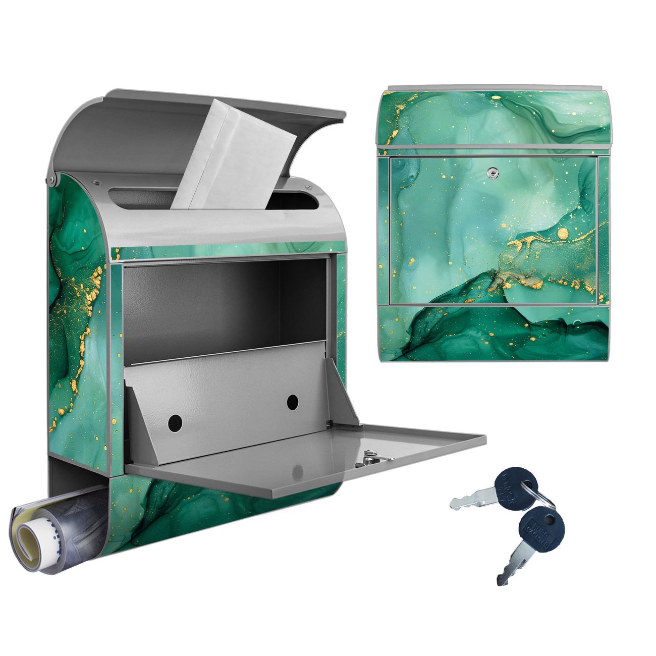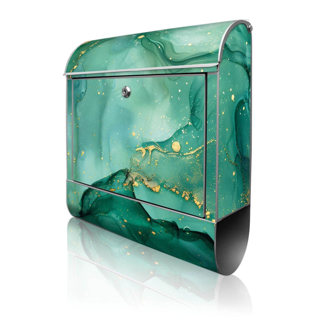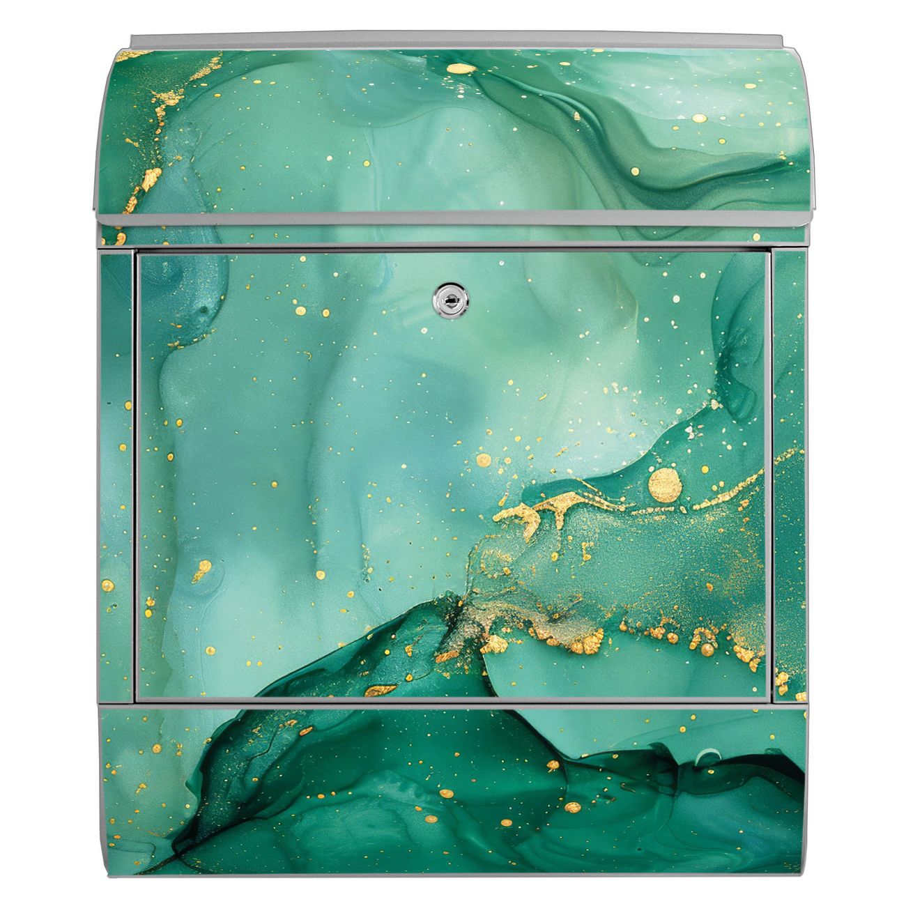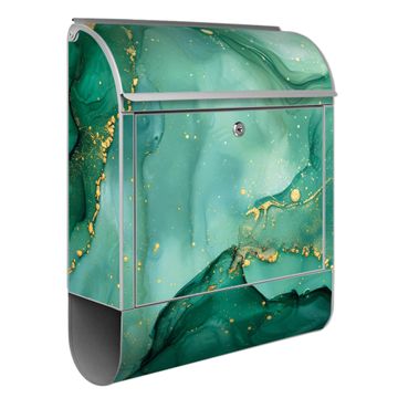 Großer Stahl Briefkasten Motiv Grüner Marmor mit Gold 1