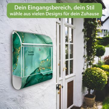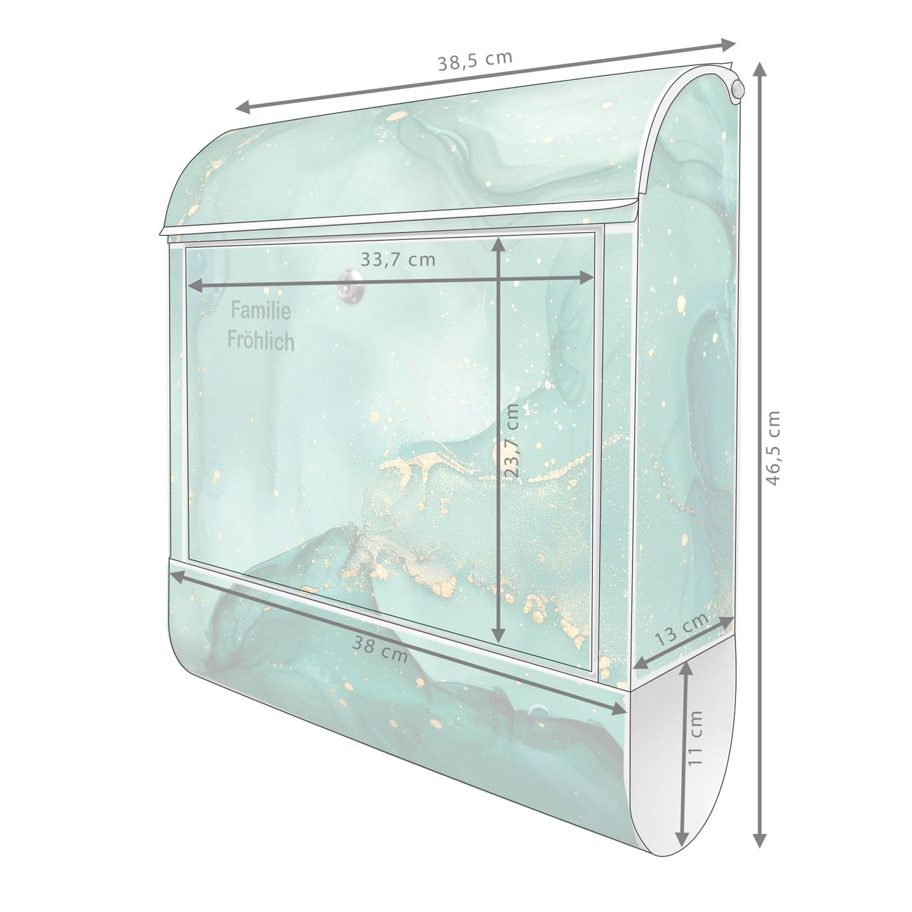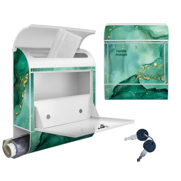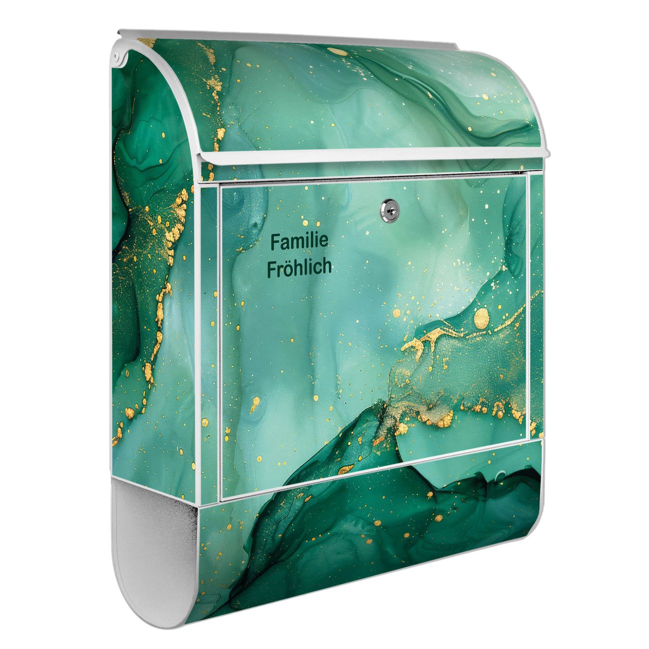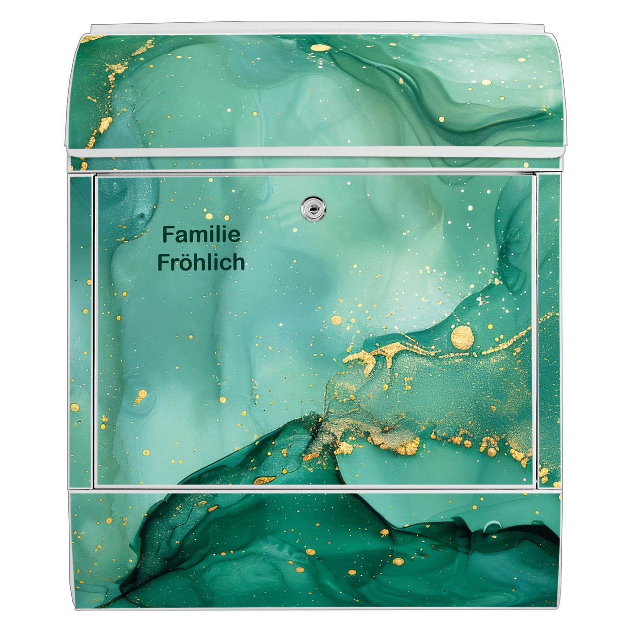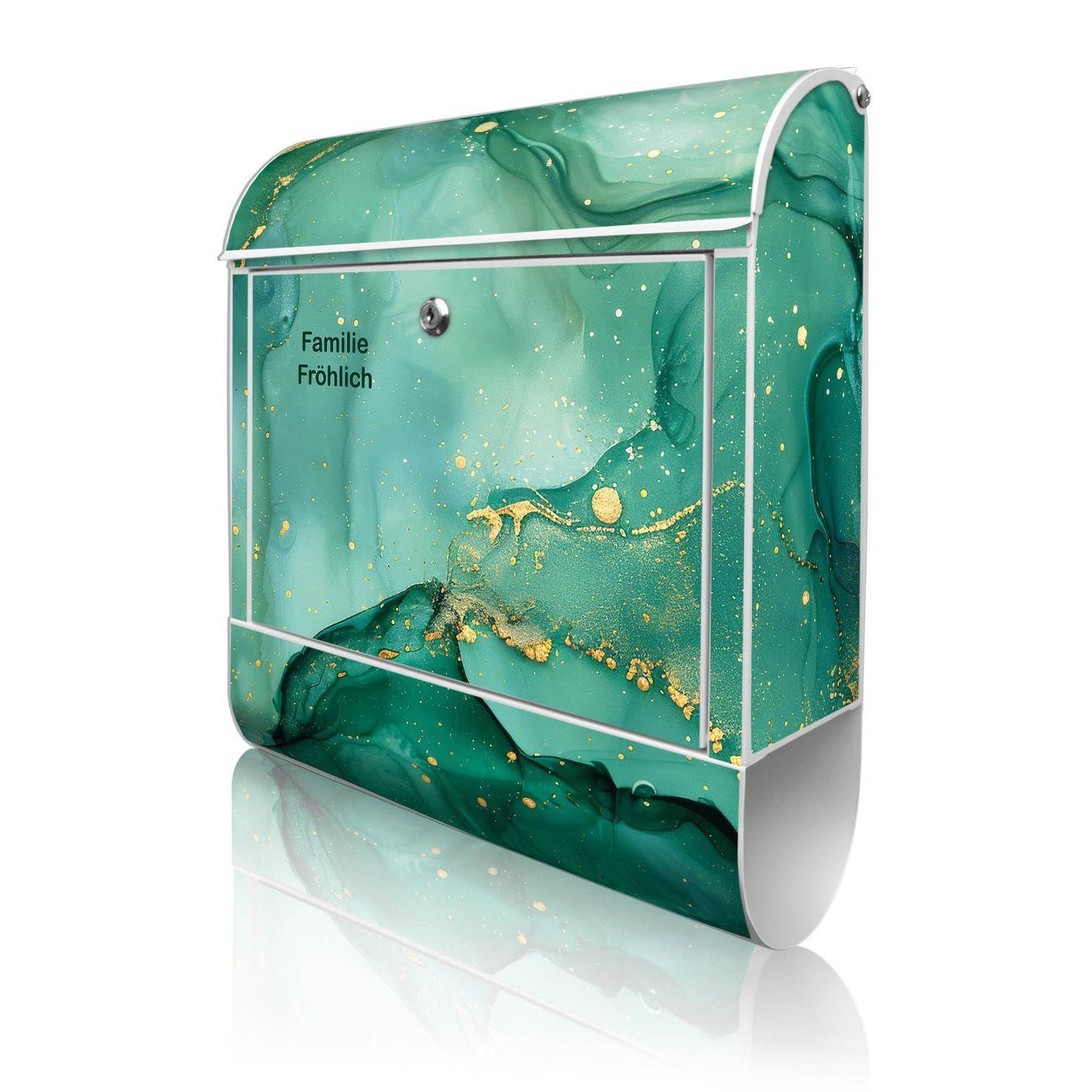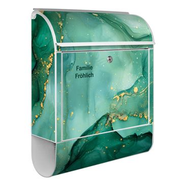 Großer Stahl Briefkasten Motiv Grüner Marmor mit Gold 1