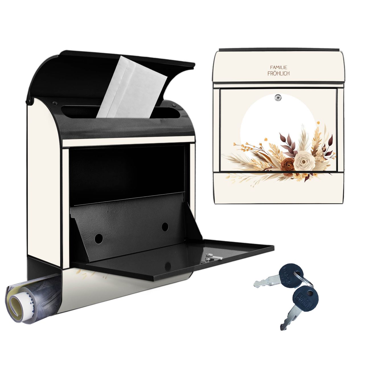 Großer Stahl Briefkasten Motiv Herbstliches Blumenarrangement