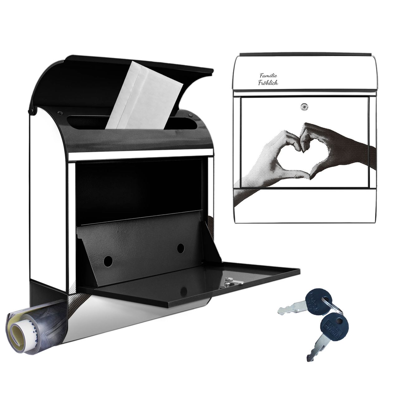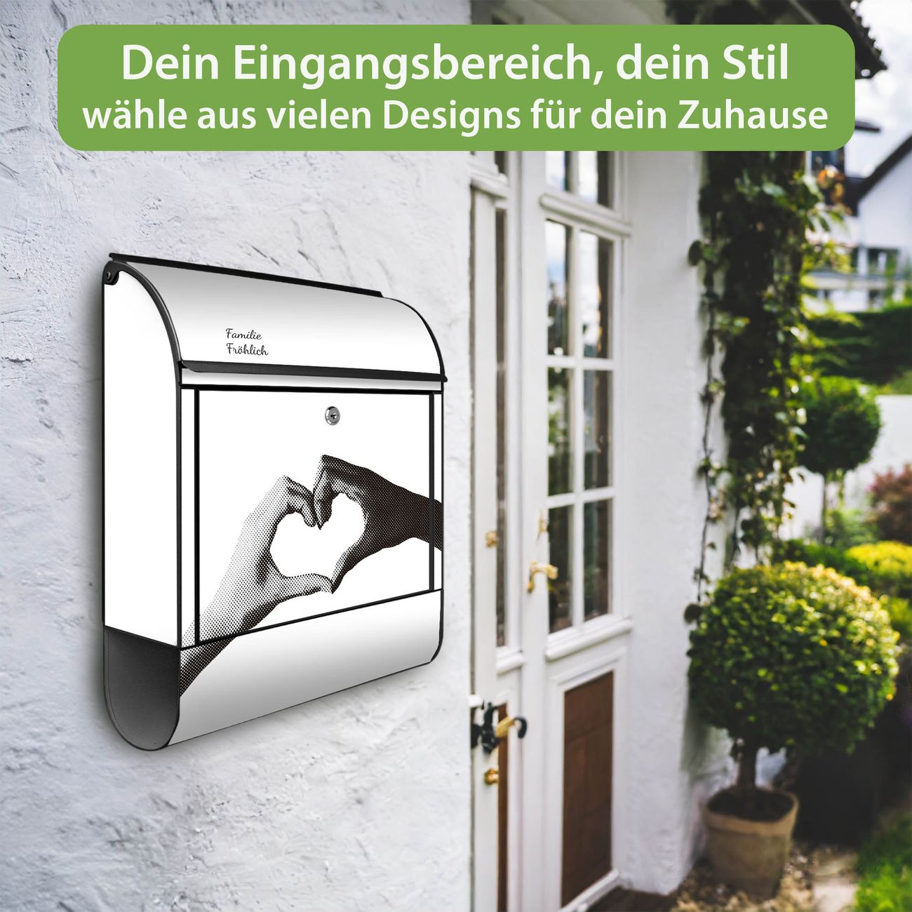 Großer Stahl Briefkasten Motiv Herzhände