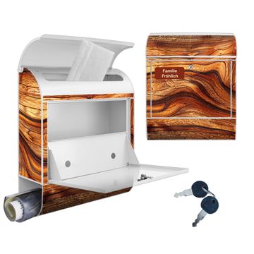Großer Stahl Briefkasten Motiv Holz Gemasert Astloch