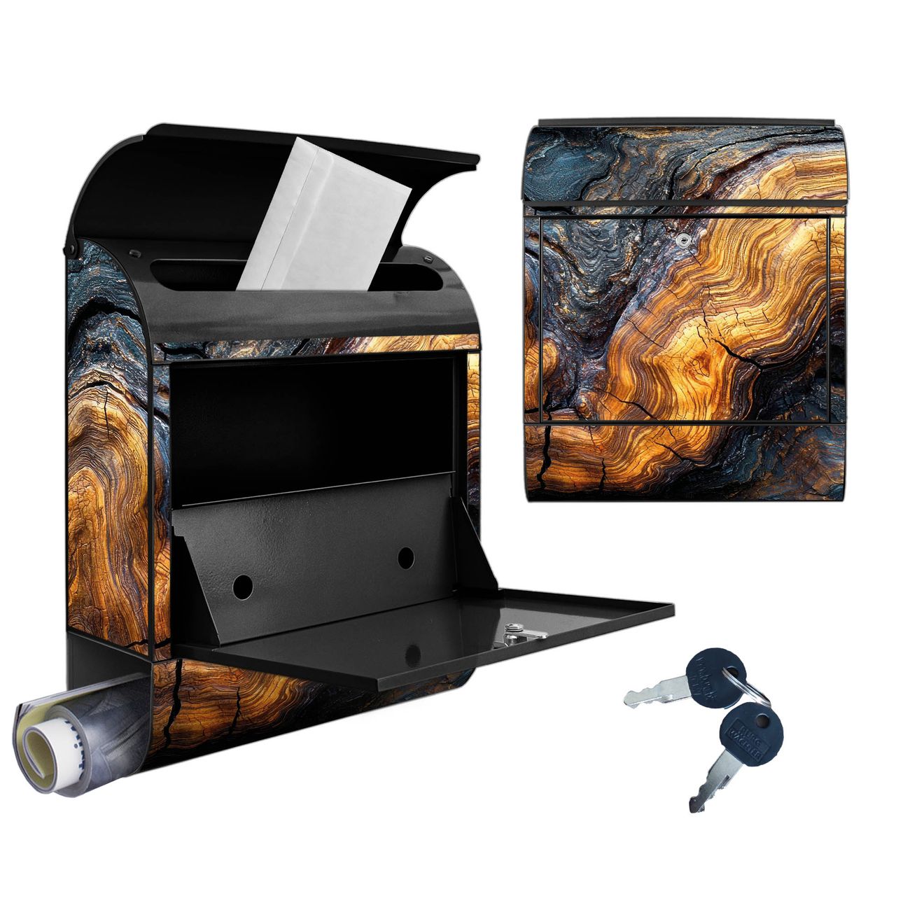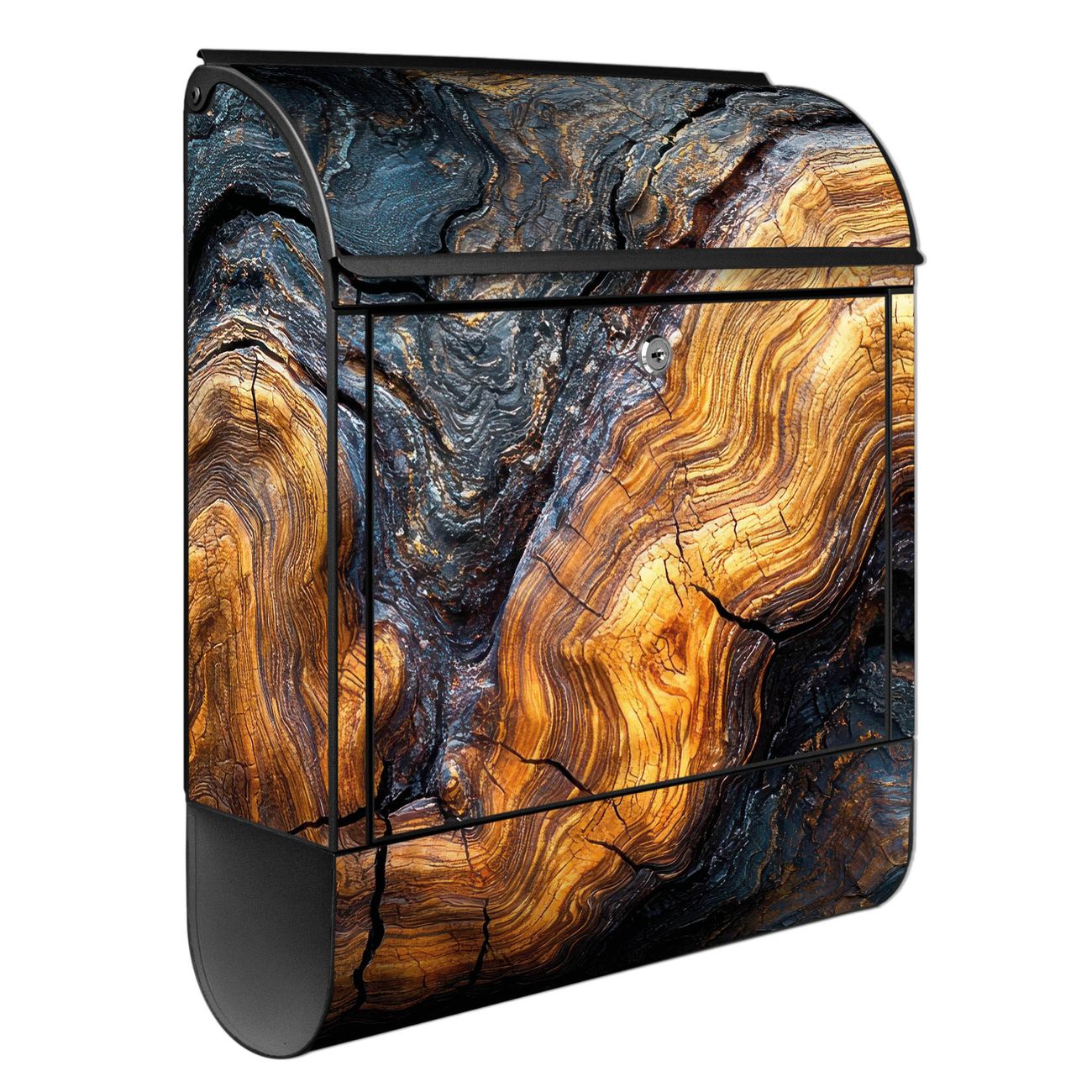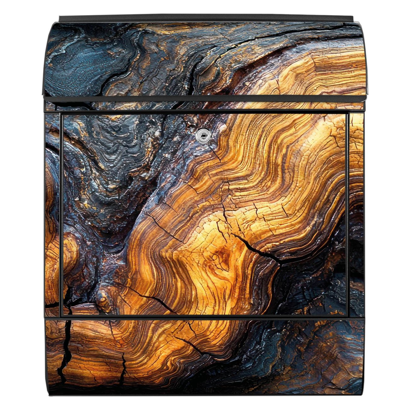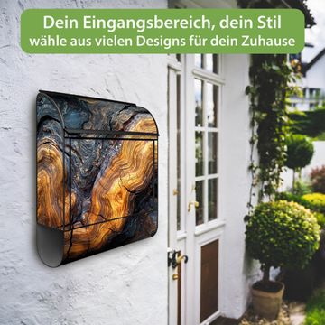 Großer Stahl Briefkasten Motiv Holz Gemasert Fluss Gold