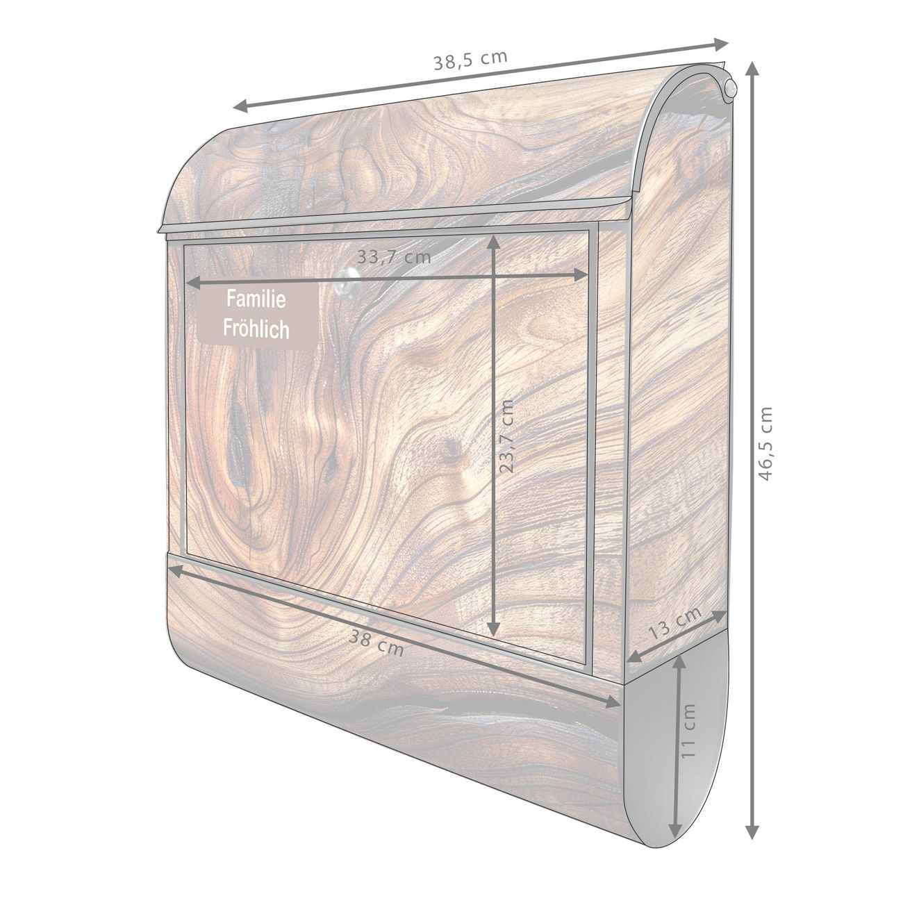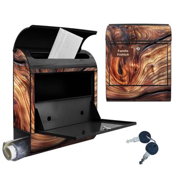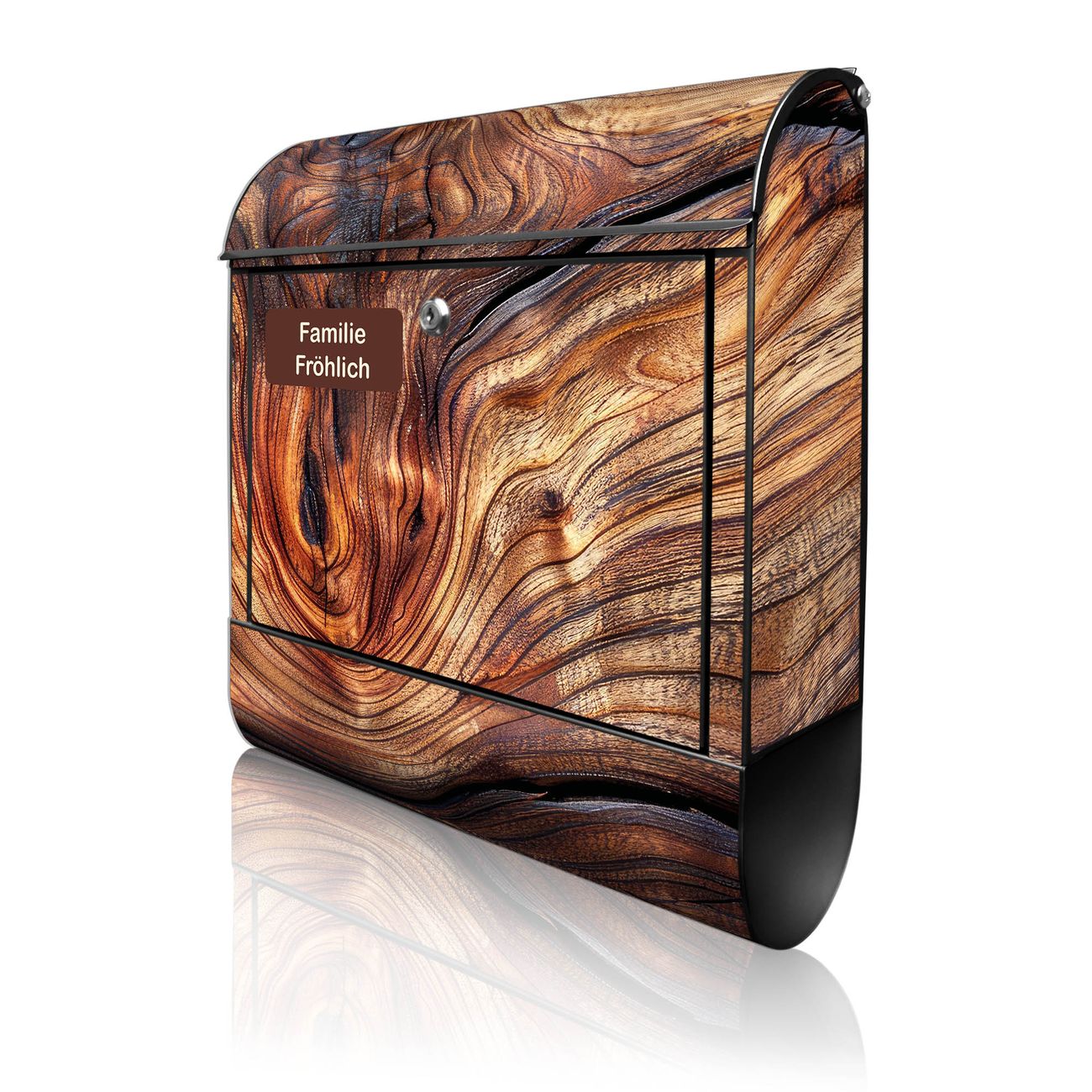 Großer Stahl Briefkasten Motiv Holz Gemasert Kurve