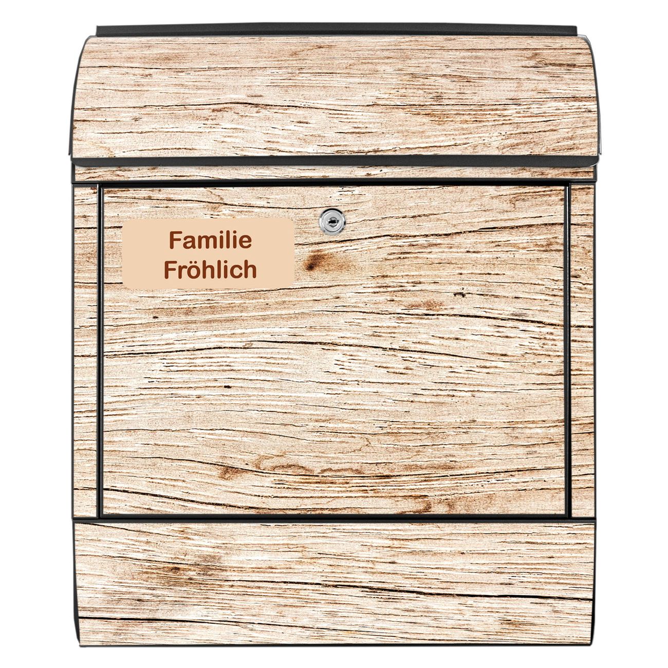 Großer Stahl Briefkasten Motiv Holz Struktur Hell