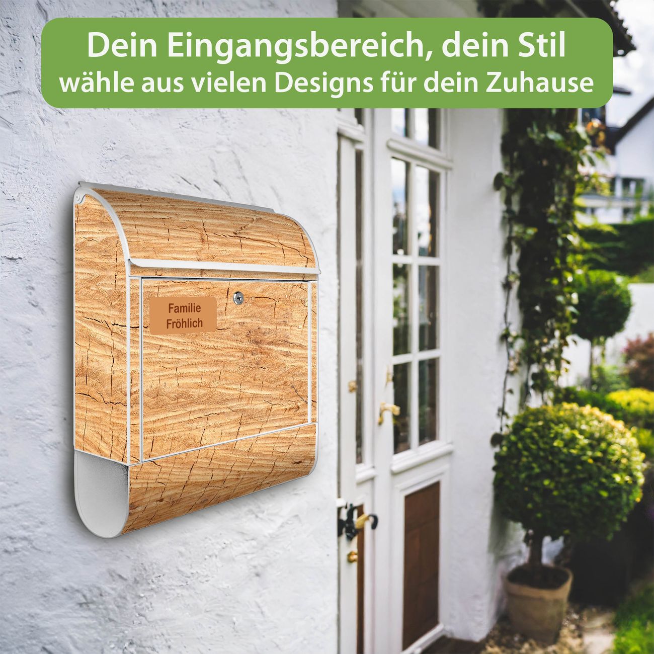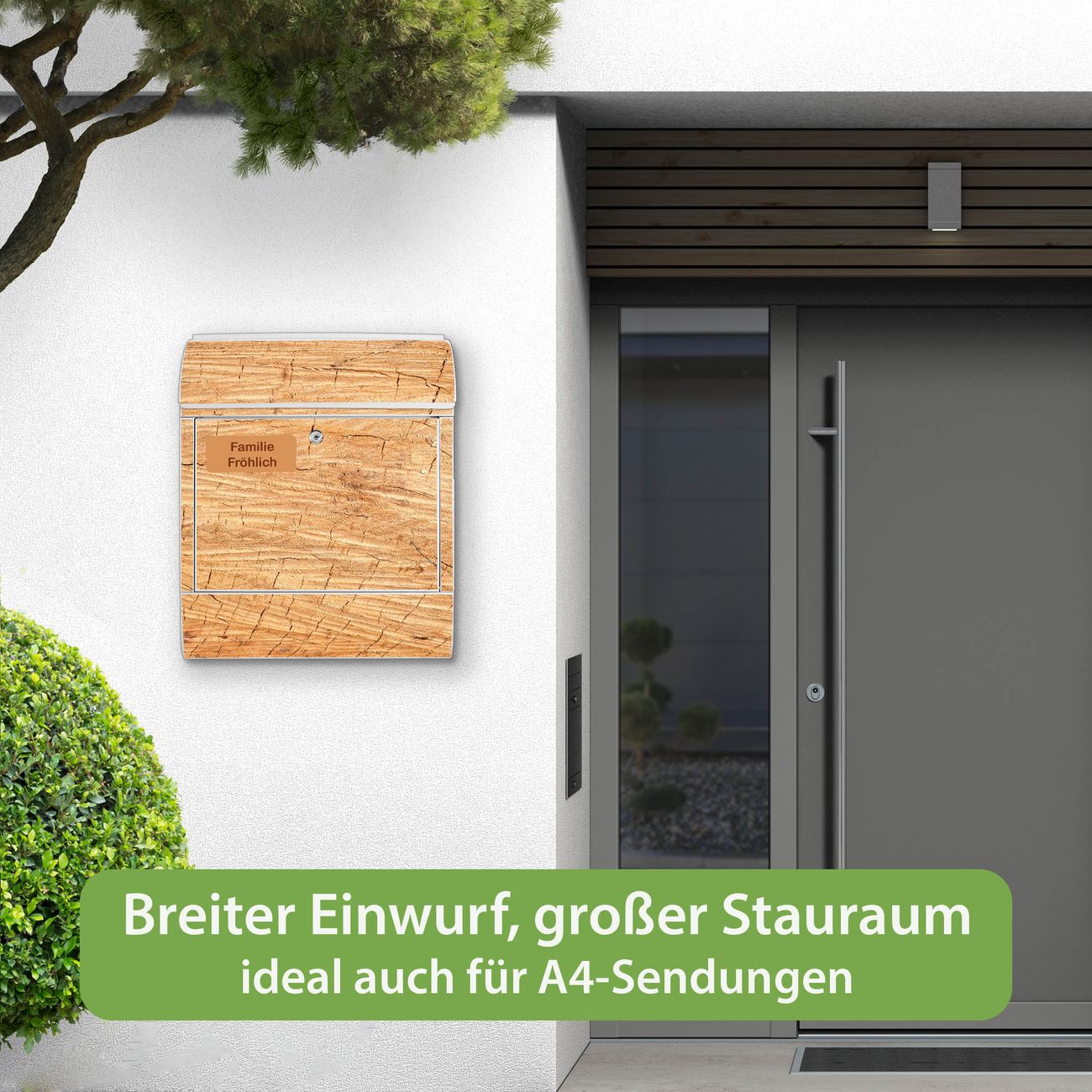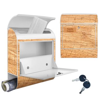 Großer Stahl Briefkasten Motiv Holz Struktur Honig