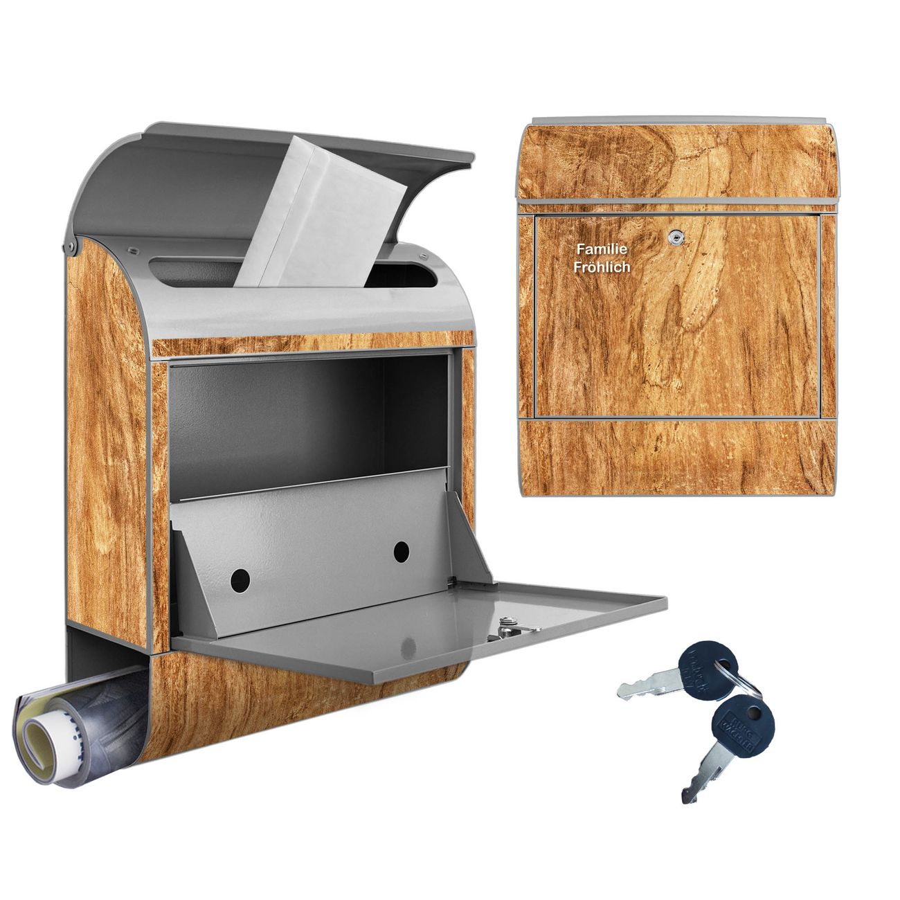 Großer Stahl Briefkasten Motiv Holz Struktur mit Astloch