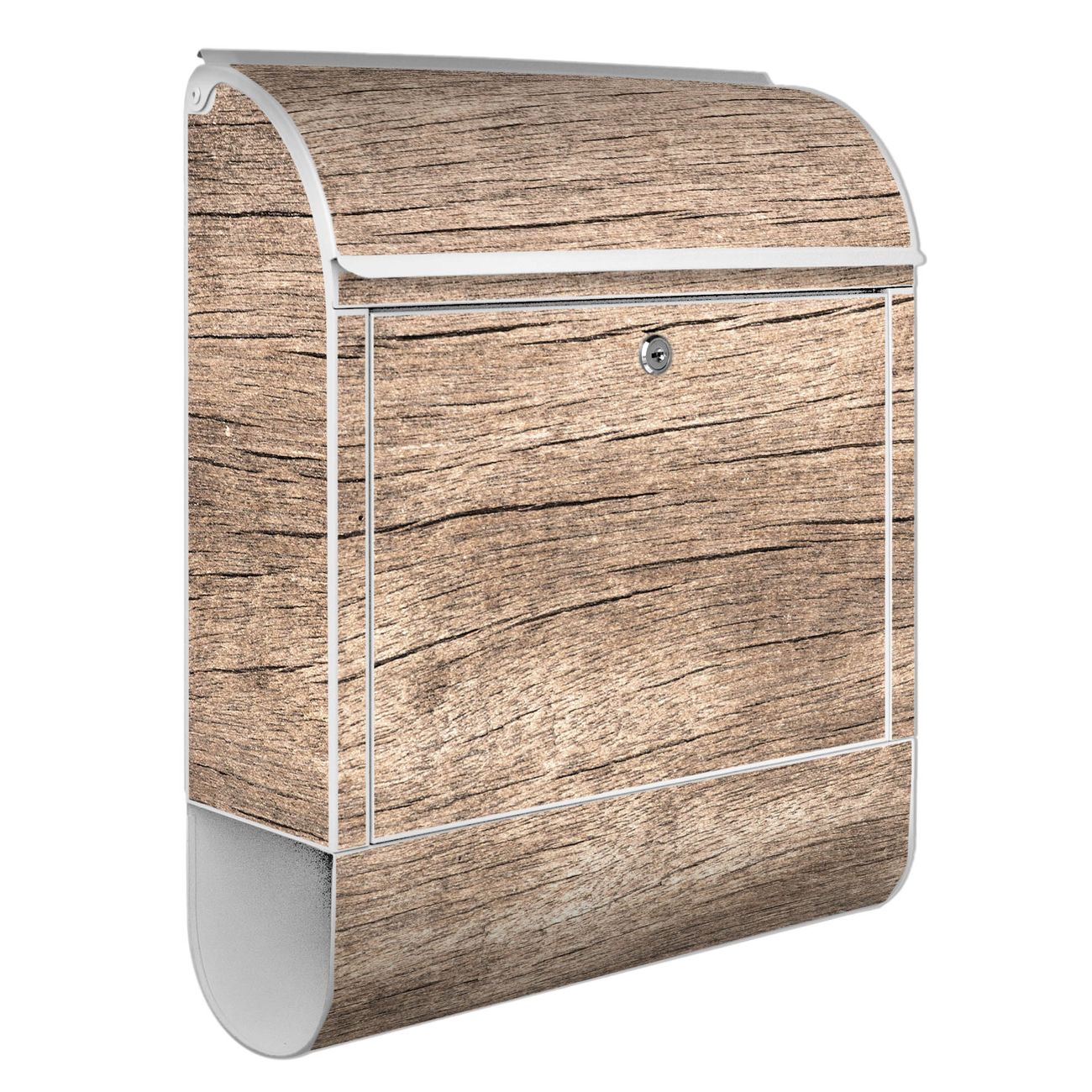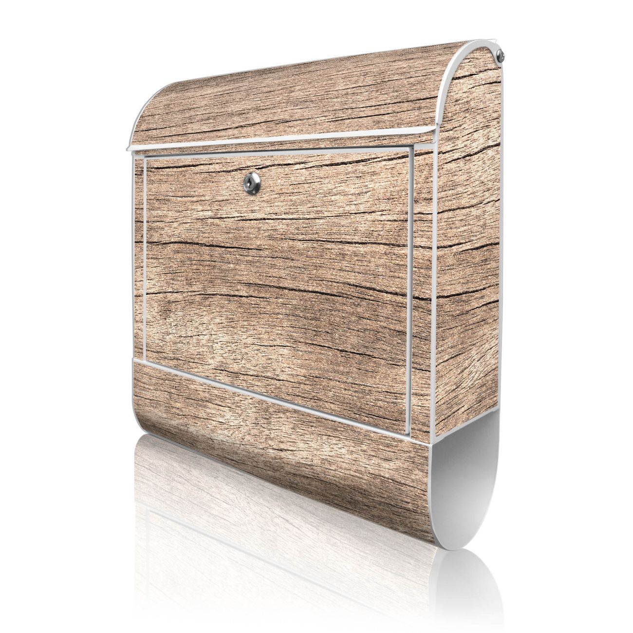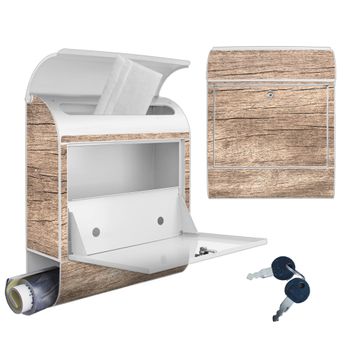 Großer Stahl Briefkasten Motiv Holz Struktur Warmgrau