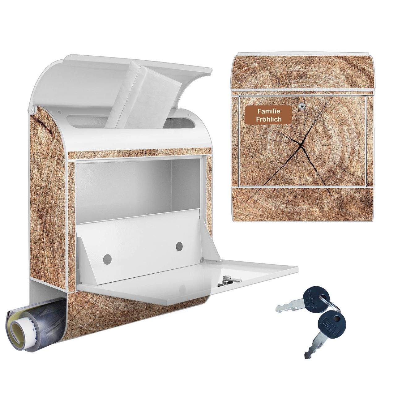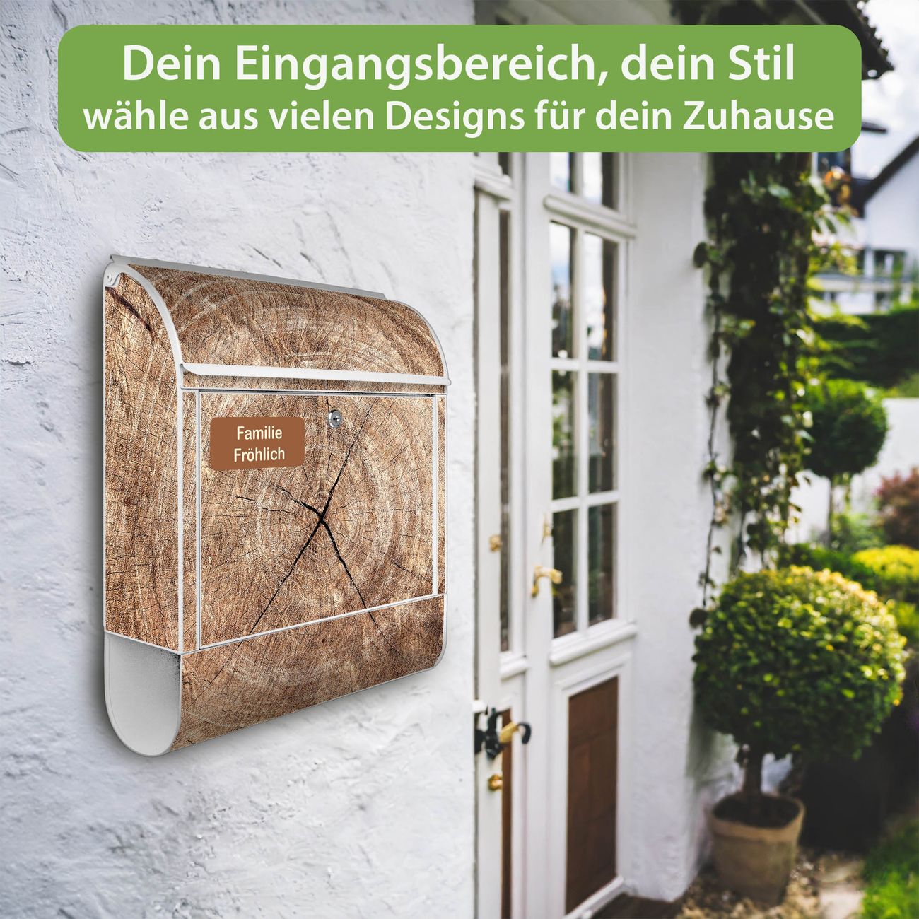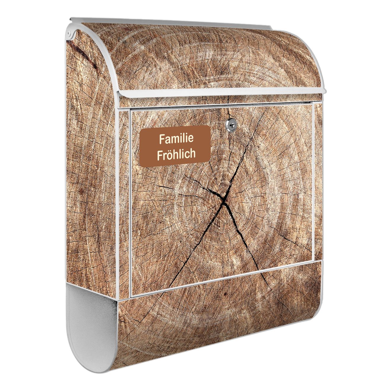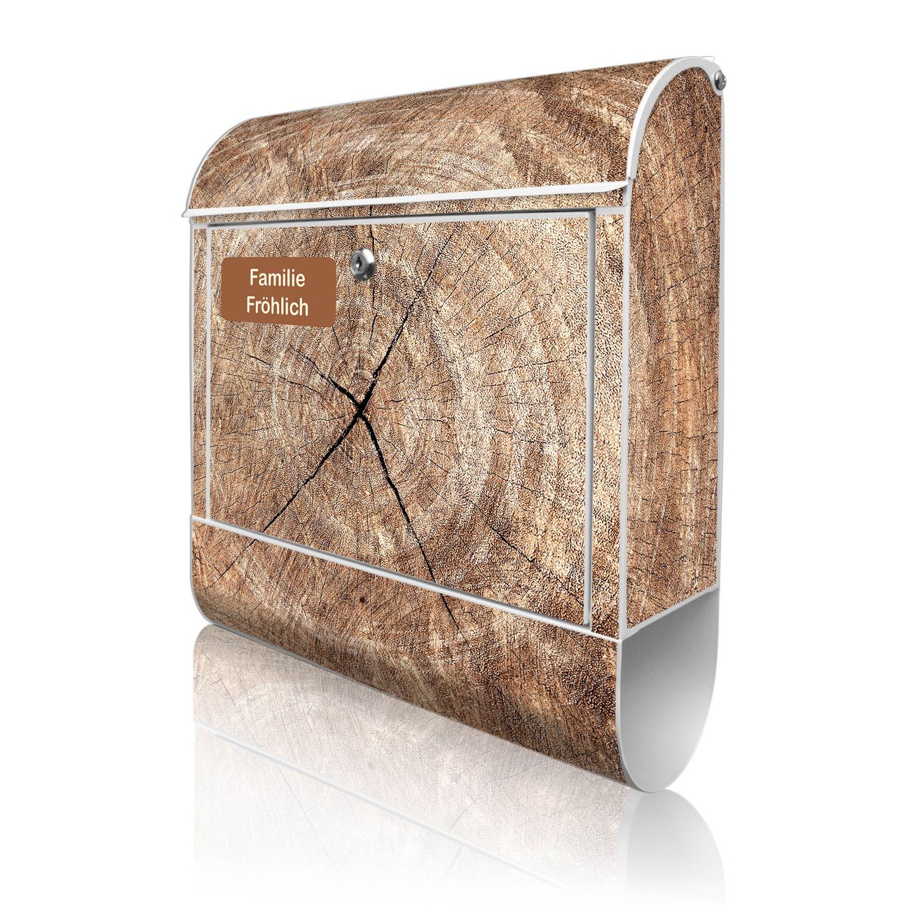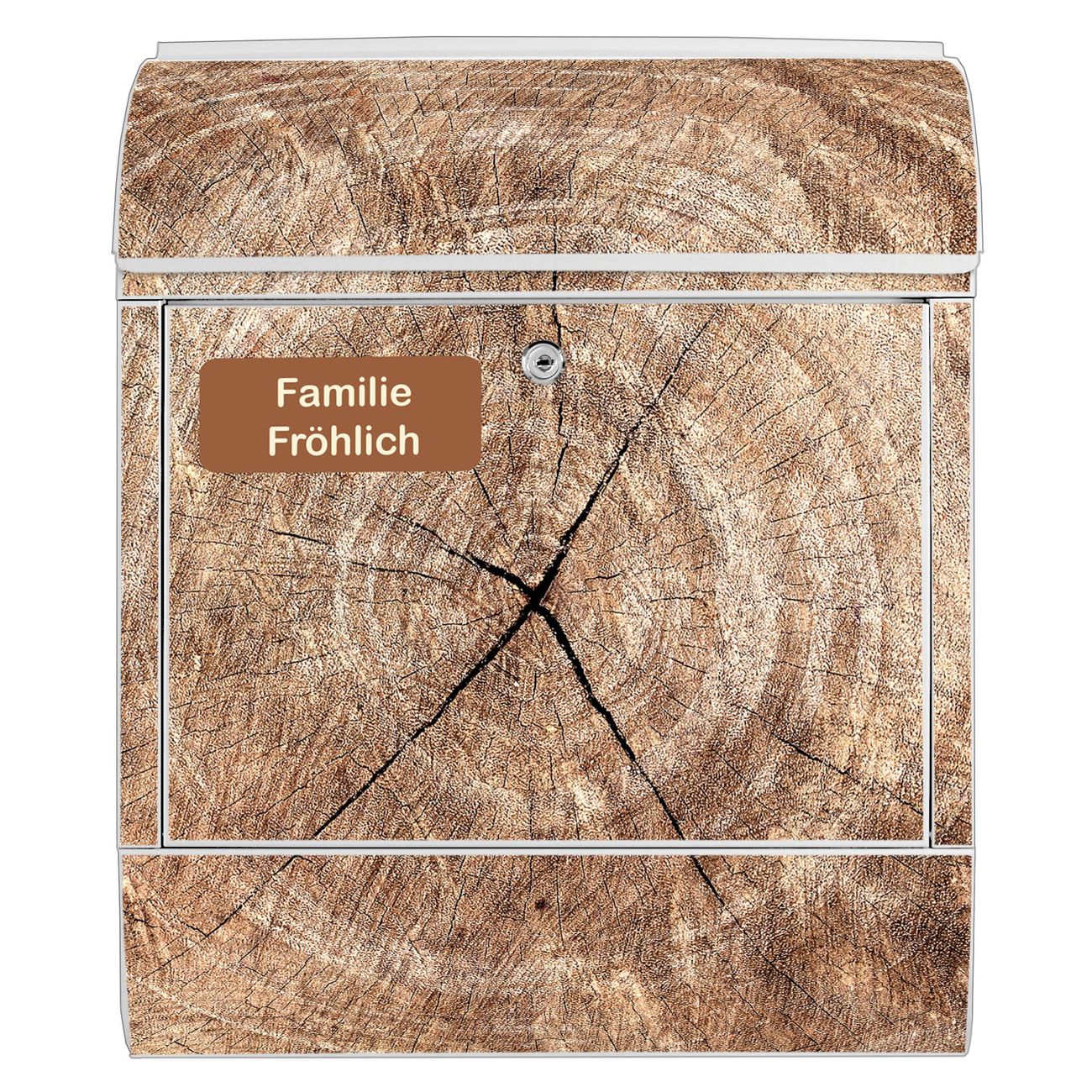 Großer Stahl Briefkasten Motiv Holzkreis mit Rissen