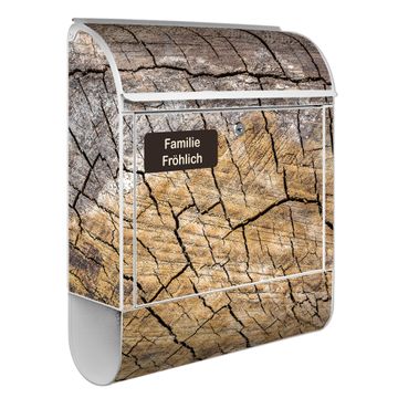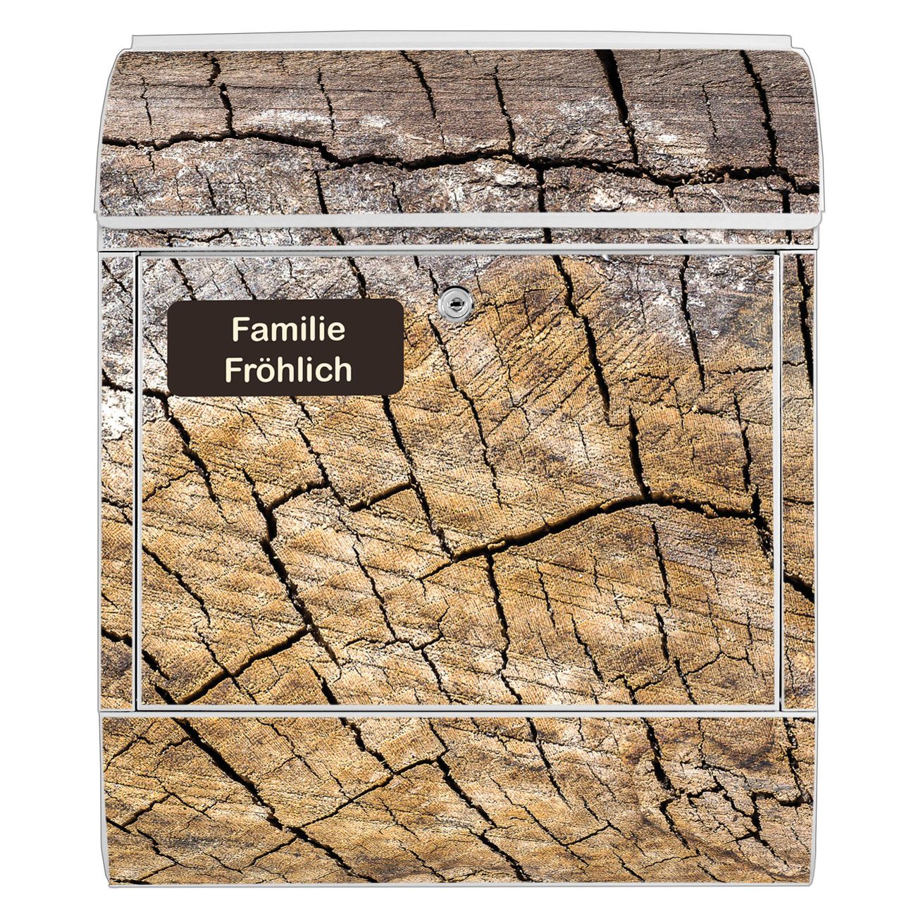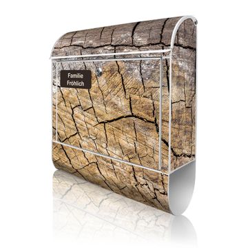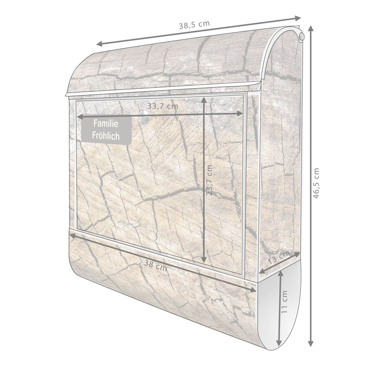 DESIGN: Der Postkasten mit Motiv Motiv Holzrisse hat ein sehr ansprechendes und ausgefallenes Design, damit entlocken Sie Ihren Nachbarn und dem Postboten ein Lächeln. Heben Sie Sich von der tristen grauen Masse ab, ohne auf Funktionalität zu verzichten. DETAILS: Der Postkasten besteht aus pulverbeschichtetem Stahl. Er ist 38x46x12,5cm groß. Das Motiv besteht aus einer wetter- und UV-resistenten Folie, die mit einem Schutzlaminat überzogen ist, sodass der Briefkasten zusätzlich vor Kratzern geschützt ist. Der Briefkasten wird mit Montagematerial, zusätzlich zwei Schlüssel sowie einer Bohrschablone geliefert. NUTZEN: Sie können diesen Briefkasten sowohl als Wandbriefkasten montieren oder einen passenden Ständer kaufen und als Standbriefkasten einbetonieren. Die Größe bietet genügend Platz für Sendungen aller Art, der Einwurf fasst auch größere A4 Sendungen. BANJADO: Ihr Briefkasten wird in Sachsen in einer kleinen Manufaktur von Hand veredelt. Die Motivfolie ist lösungsmittelfrei und schutzlaminiert für einen langen Halt. Wir legen großen Wert auf die Verbindung von Funktionalität und Design. Sie erhalten Handarbeit aus Sachsen.