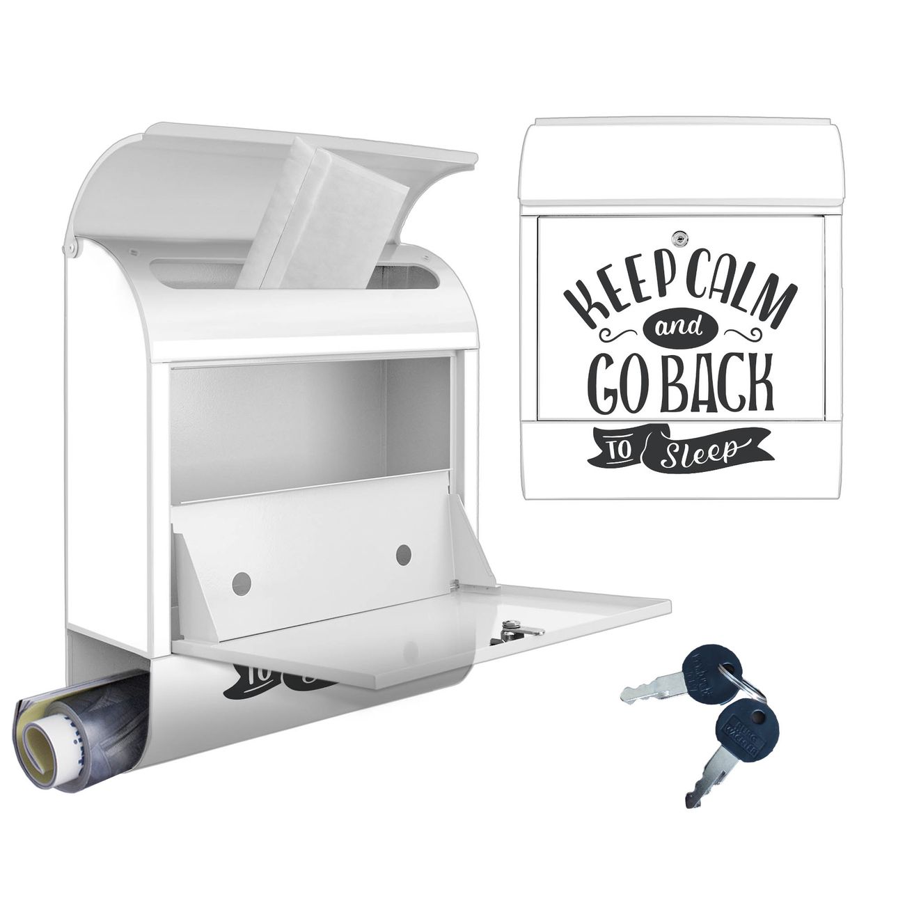 Großer Stahl Briefkasten Motiv Keep Calm Schriftzug