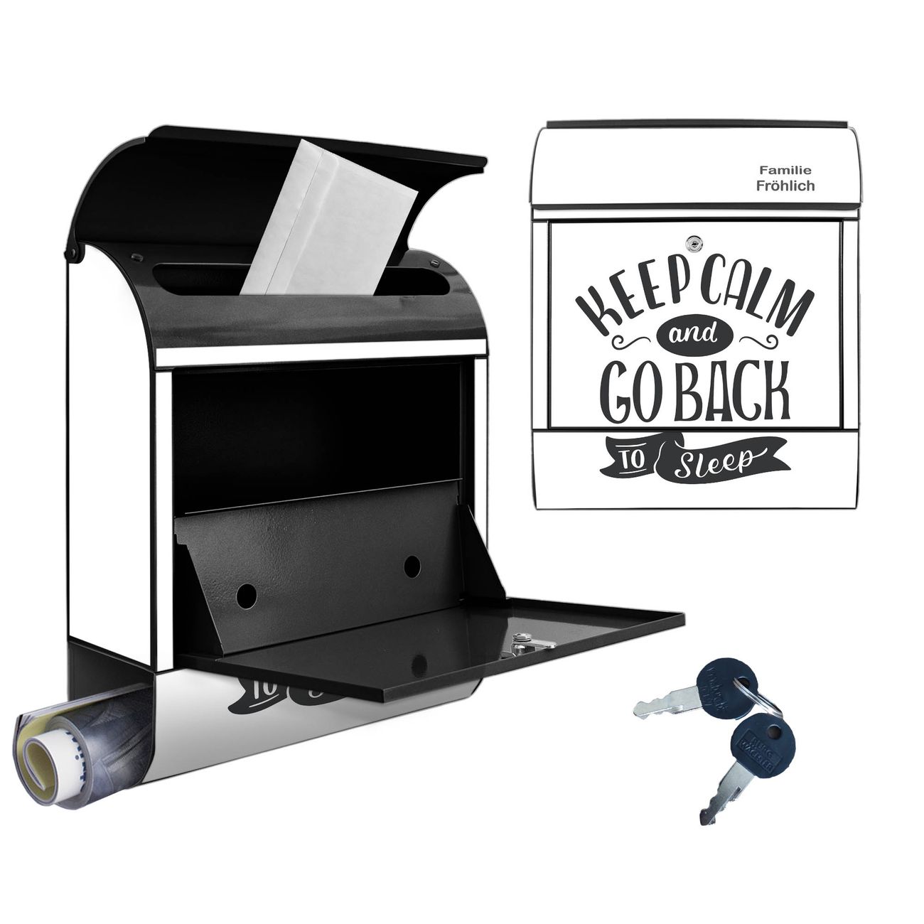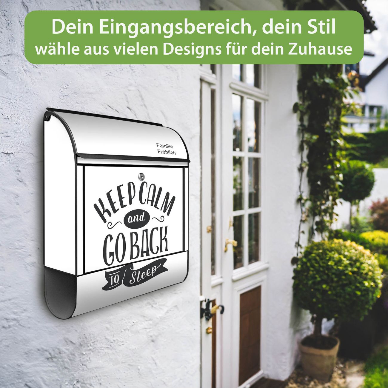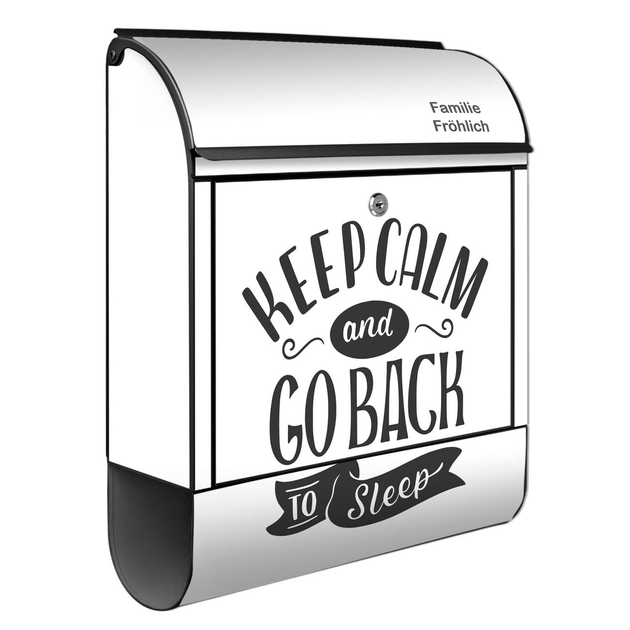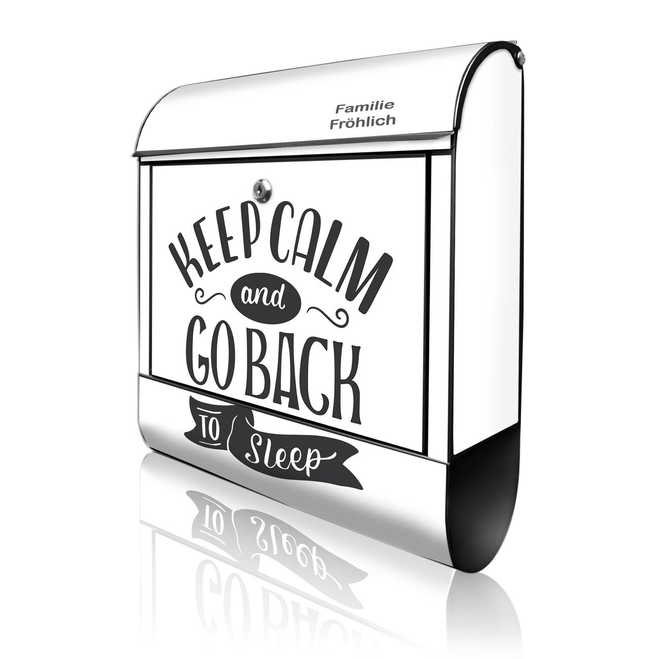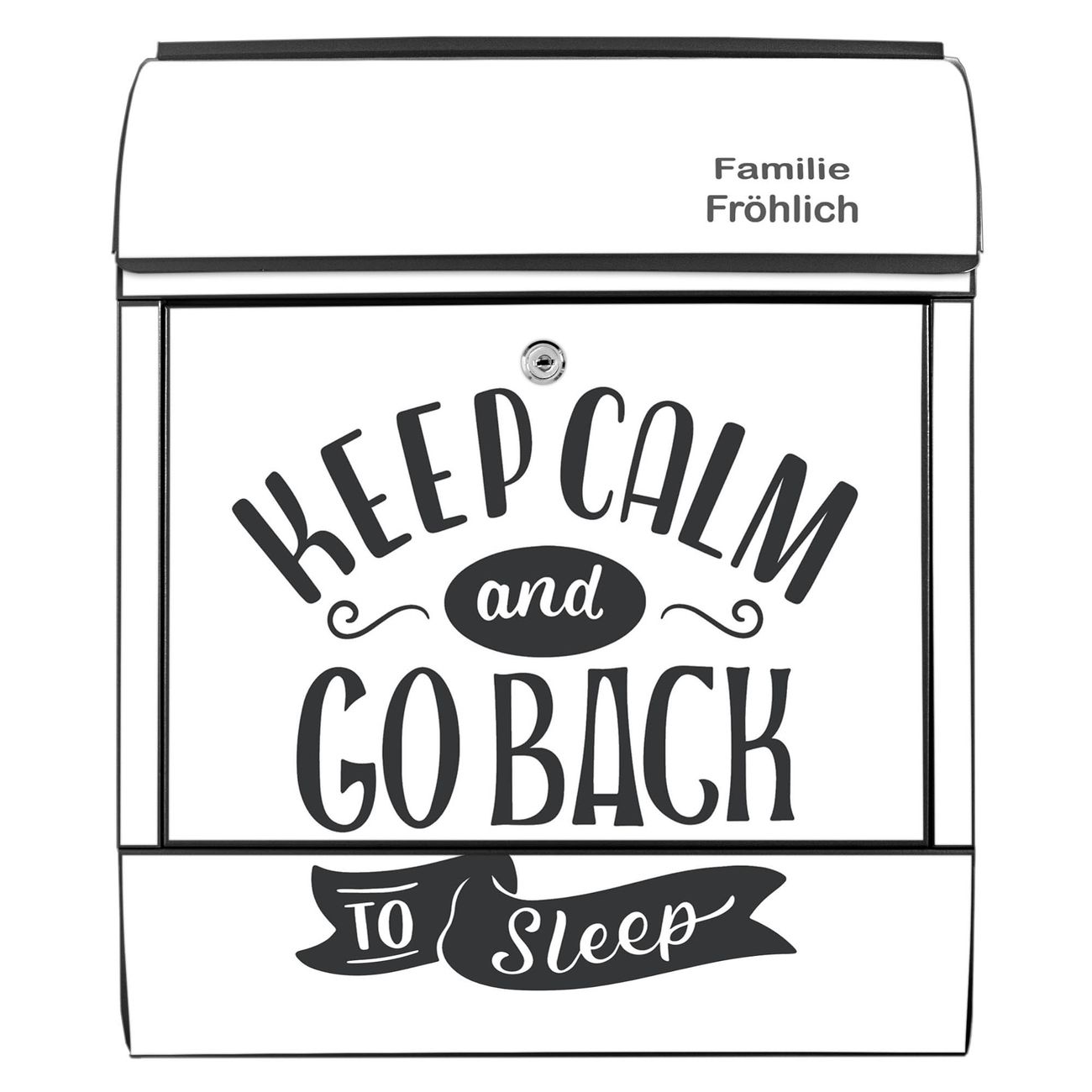 Großer Stahl Briefkasten Motiv Keep Calm Schriftzug