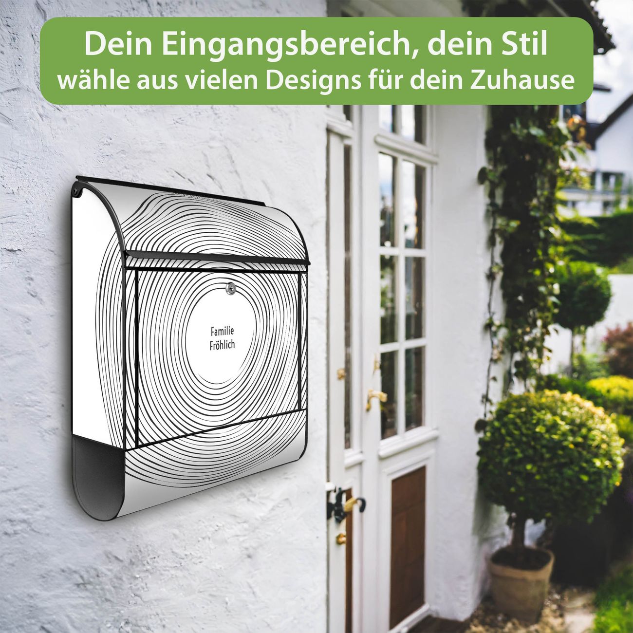 Großer Stahl Briefkasten Motiv Konzentrische Kreise