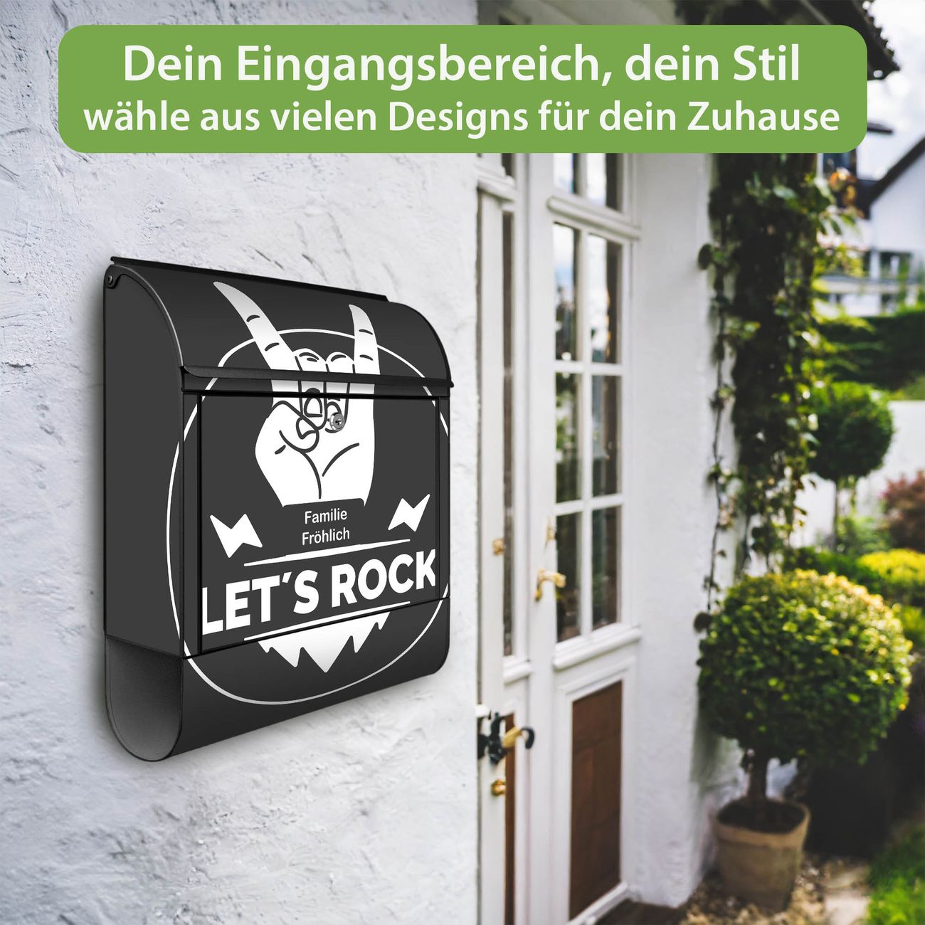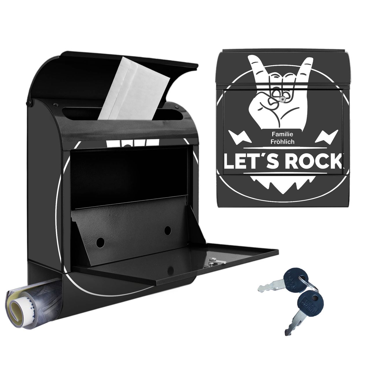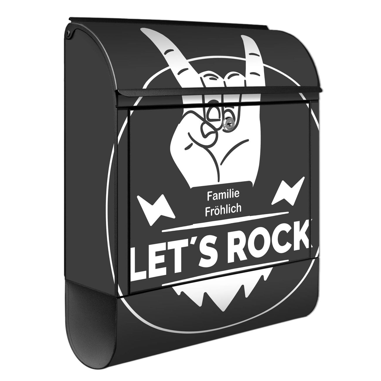Großer Stahl Briefkasten Motiv Let's Rock