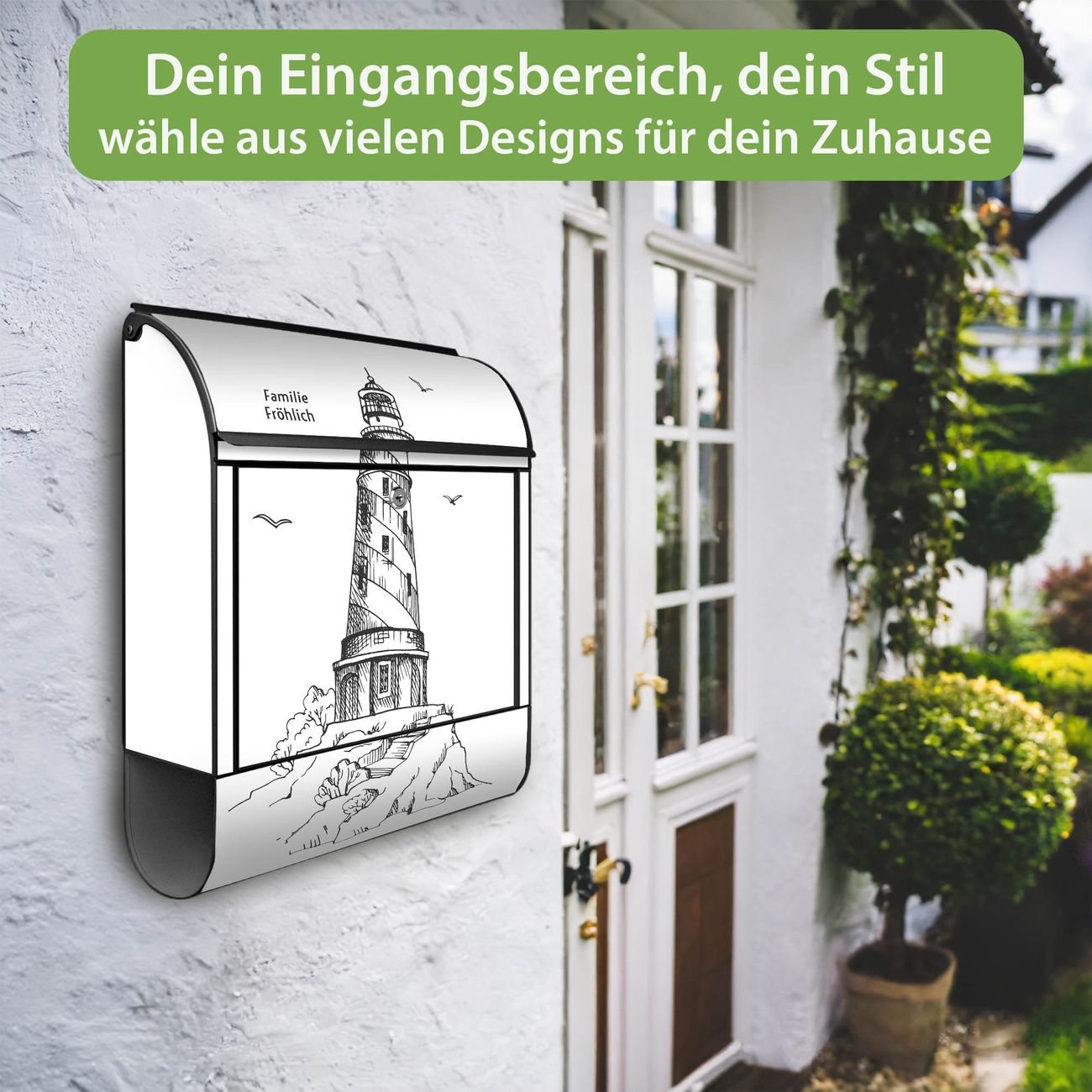 Großer Stahl Briefkasten Motiv Leuchtturm 7